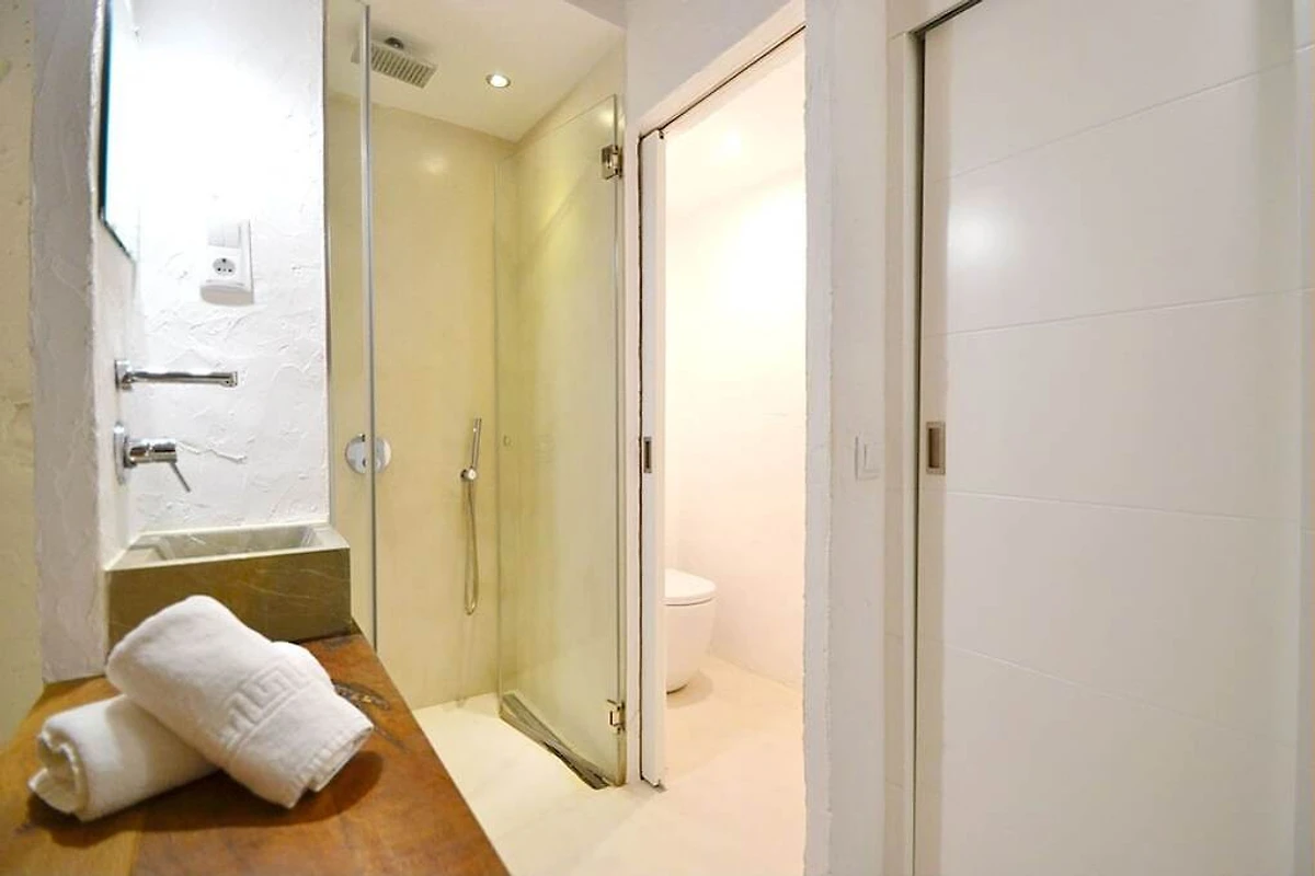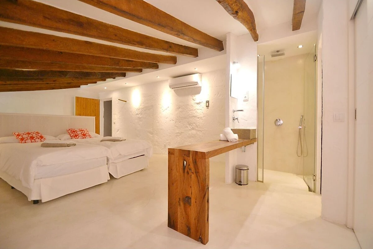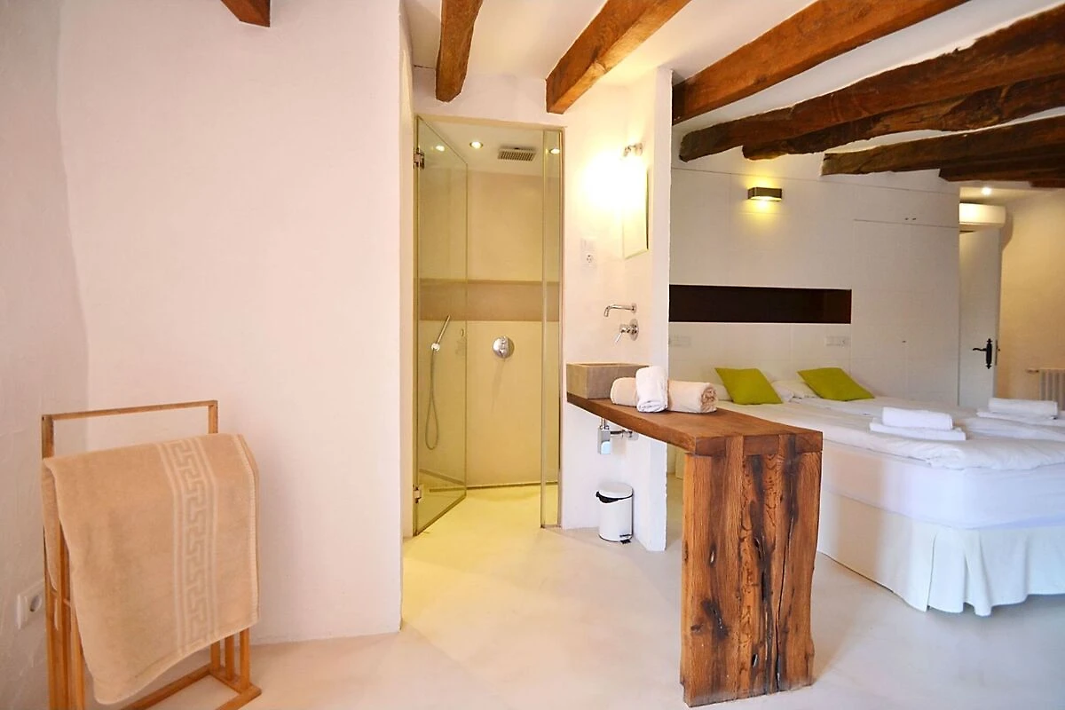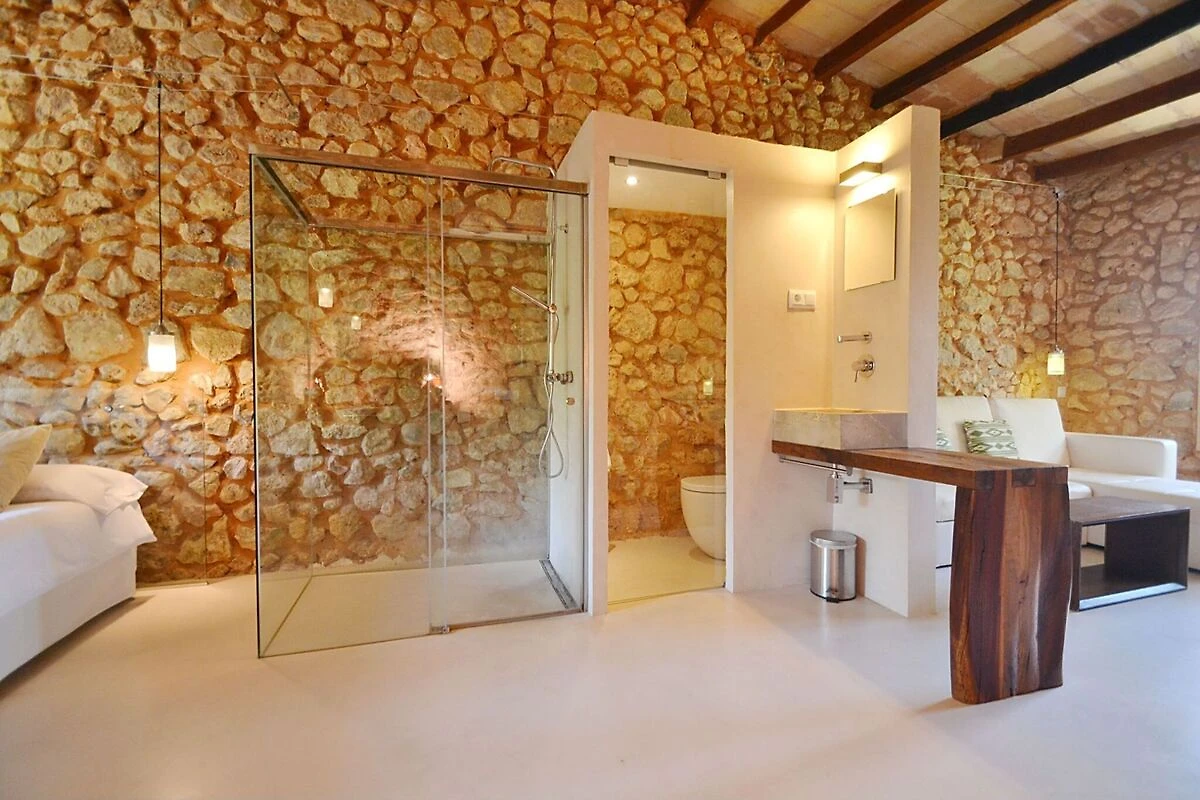 Finca Rafal Antic si trova in un piccolo borgo molto con solo quattro case e gode di completa privacy in combinazione con isolamento totale e serena calma. L'attuale finca è stato accuratamente restaurato negli ultimi dieci anni per ora fornire una casa piena di fascino ambience.Approached naturali dall'ingresso principale al largo della strada di campagna verdeggiante è il bel cortile acciottolato che conduce alla porta di quercia borchiati e archway.The pavimenti ciottoli, pareti di pietra interne, pavimenti in cotto e le travi di quercia aggiungono un vero carattere di questa deliziosa casa colonica. Maiorca doppie porte di legno si aprono in sala d'ingresso, sul retro della quale troviamo la zona pranzo che ha doppie porte si aprono sulla terrazza e piscina zona posteriore. A destra di questa zona troviamo la cucina in stile classico con originale lavello in pietra, forno elettrico \/ piano cottura, lavastoviglie e forno a microonde. Il frigorifero \/ congelatore si trova nella sala da pranzo e la lavatrice nella zona di servizio esterna in piscina. A destra dell'ingresso una porta conduce in due livelli e rinfrescante aperto lounge area soggiorno a pianta, che ha caratteristiche pareti in pietra originali e caminetto decorativo. La connessione internet si trova qui. Una porta conduce in un corridoio; da un lato è un bagno completo showe