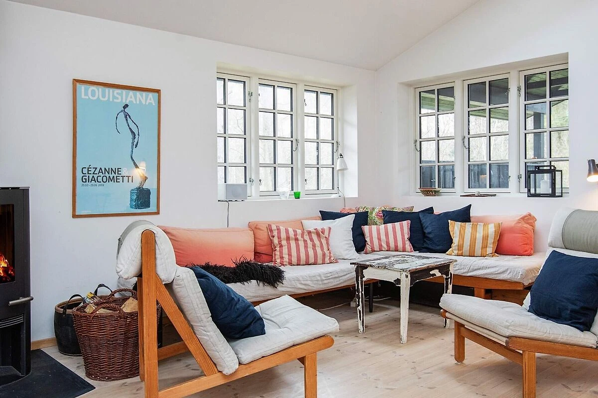 Ampio e spazioso casolare situato a ca. 250 metri dal mare a Veddinge Bakker, situato in posizione tranquilla tra gli alberi in una zona tranquilla e piccola villetta. C'è molto spazio nella grande cucina/soggiorno e nel soggiorno. L'ampia terrazza all'aperto si affaccia sul parco e qui si può leggere un libro su uno dei lettini mentre i bambini giocano nel parco e tra gli alberi. Sulla grande terrazza coperta è possibile accendere il barbecue e l'inizio della primavera si gode all'esterno dell'autunno. La zona è bella e collinare e ideale per escursioni a piedi e in bicicletta per i più attivi. Il casolare è adatto sia a famiglie con bambini che a coppie che vogliono stare con la natura. Non in affitto a gruppi di giovani.