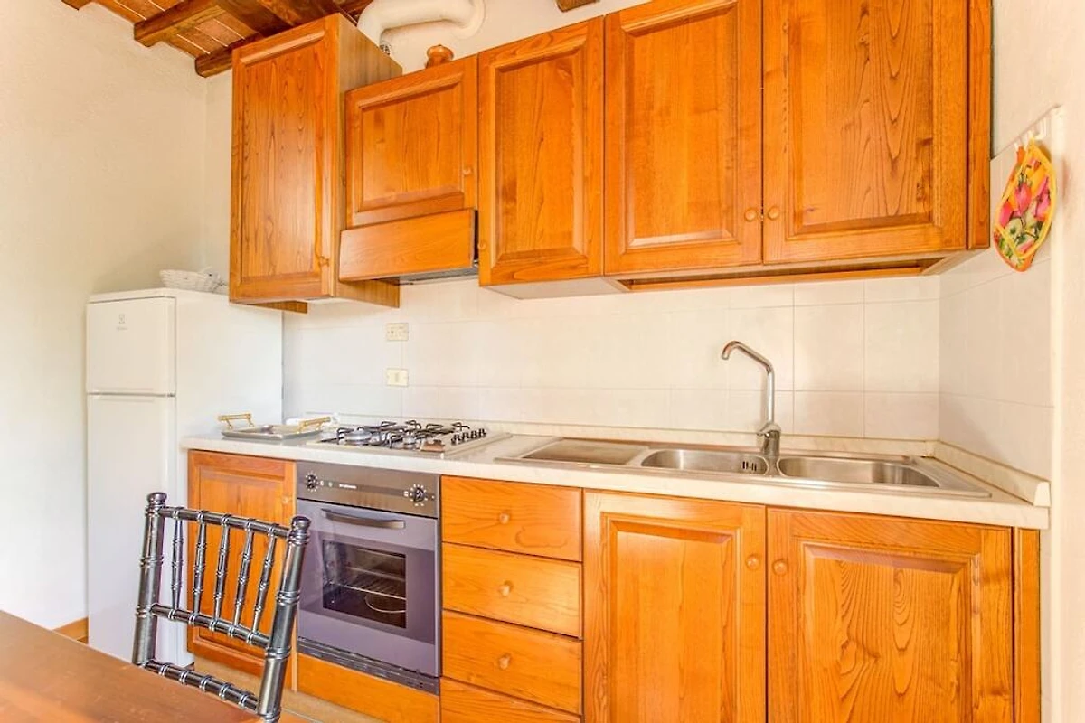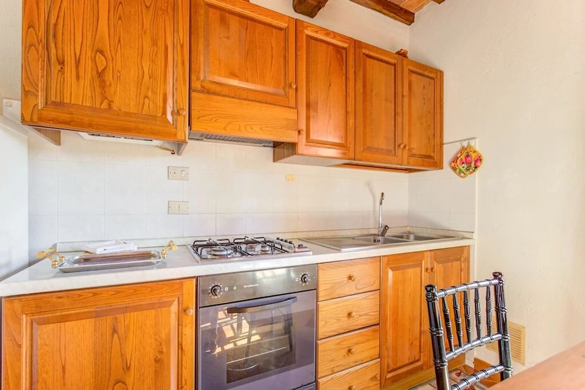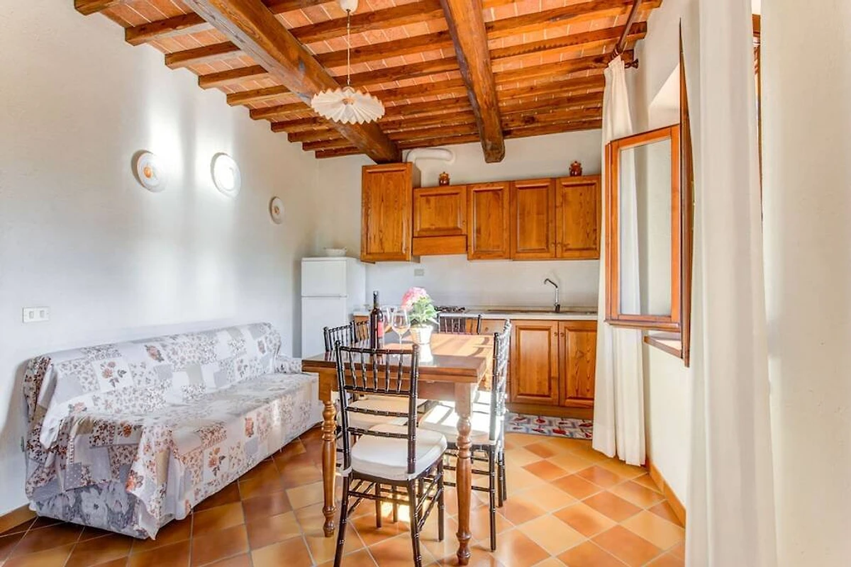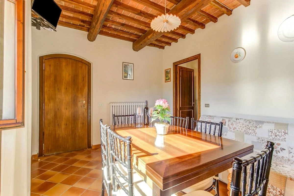 Immerso nel cuore delle colline del Chianti, questo incantevole appartamento in stile toscano offre un rifugio tranquillo circondato da vigneti e uliveti. Ospitato in un fienile splendidamente ristrutturato, offre un giardino privato, una piscina in comune e un'area barbecue esterna, perfetta per serate rilassanti sotto le stelle. Che viaggiate con la famiglia, gli amici o con animali domestici, questo spazio è progettato con cura per il comfort, con ampio spazio per i più piccoli e gli amici a quattro zampe da esplorare.