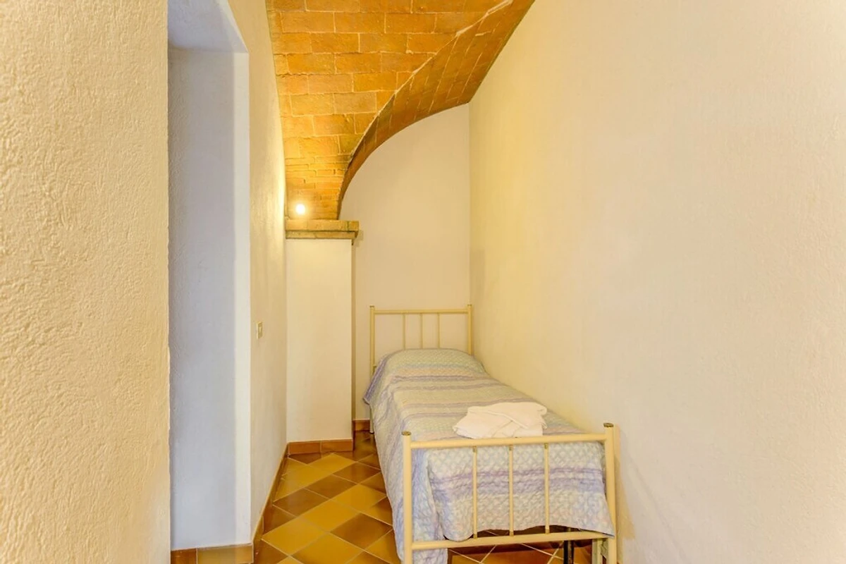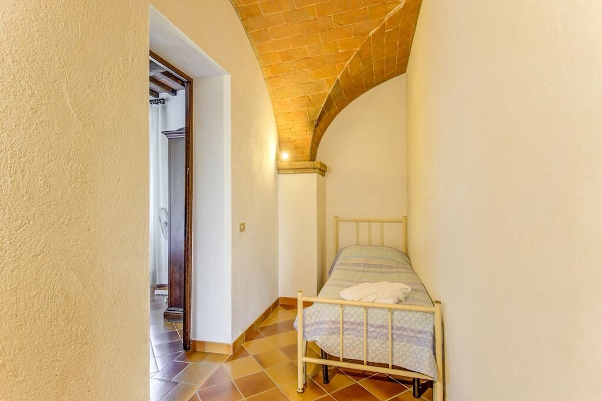 Perfettamente situata a Gambassi Terme, questa casa è la porta di accesso ai borghi più incantevoli della Toscana. Passeggiate per le strade medievali di San Gimignano (18 km), ammirate i panorami di Volterra (34 km) o immergetevi nelle bellezze artistiche di Firenze (69 km) e Siena (53 km). Gli amanti degli animali domestici potranno godersi passeggiate panoramiche in campagna e i vicini maneggi offrono percorsi adatti sia ai principianti che ai cavalieri più esperti.