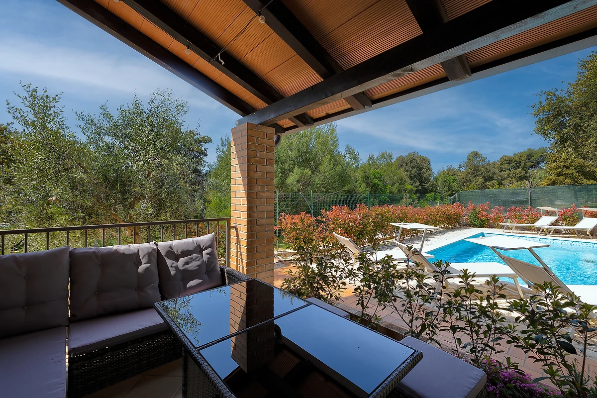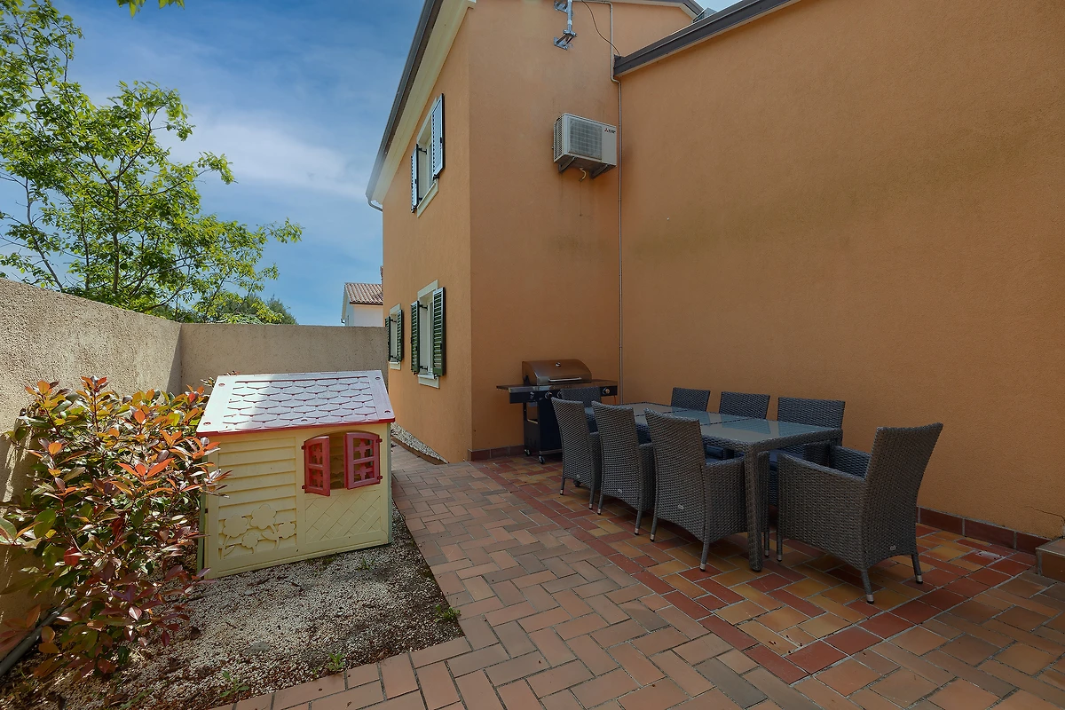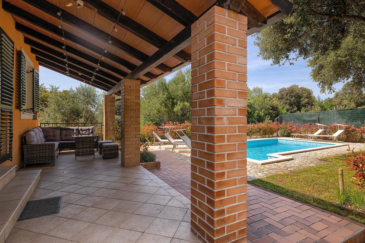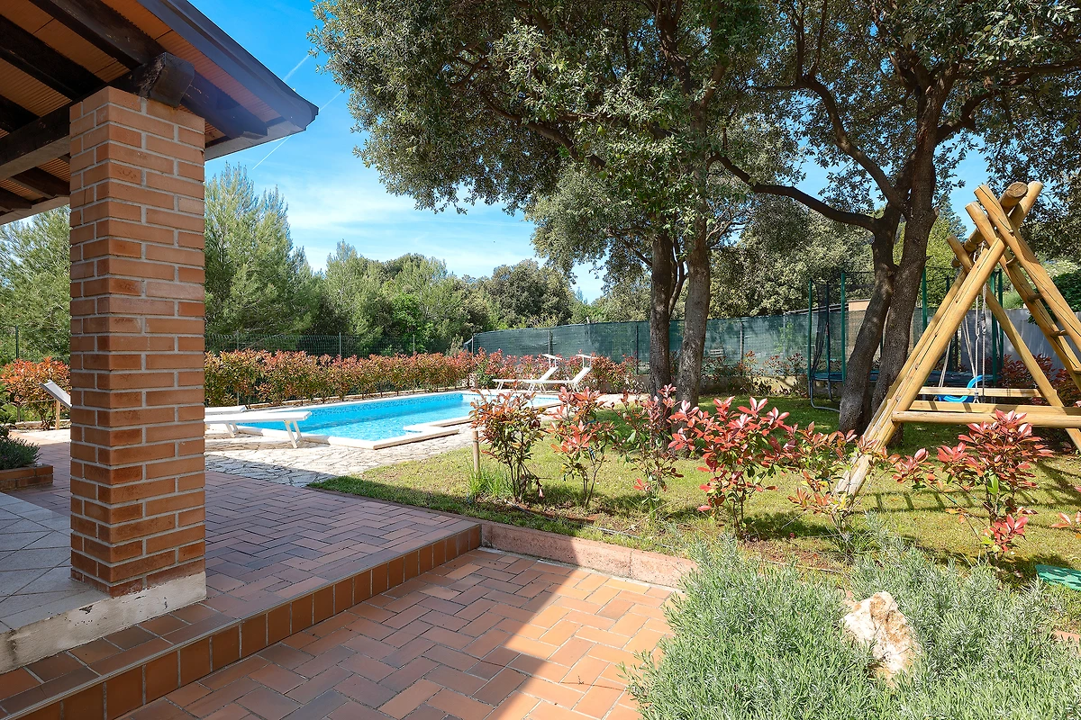 Una bellissima villa con piscina privata si trova in uno dei luoghi turistici più famosi dell'Istria - Medulin. La villa si trova in una strada tranquilla. Questo bellissimo alloggio può ospitare fino a 8 persone e dista solo 1 km dal mare. Puoi anche raggiungere a piedi un ristorante (900 m) e un negozio (950 m). La villa si estende su 650 mq, di cui 130 mq di abitazione. Nel giardino privato si trova una piscina di 35 mq con doccia esterna. Ping-pong, parco giochi per bambini, barbecue con mobili da giardino e un tavolo all'aperto dove mangiare tutti insieme. L'intera casa è climatizzata e dispone di una connessione Wi-Fi gratuita. La villa offre 4 belle e accoglienti camere da letto con 2 bagni. La villa può ospitare fino a 8 persone in 4 camere da letto. La villa offre una vacanza molto tranquilla.