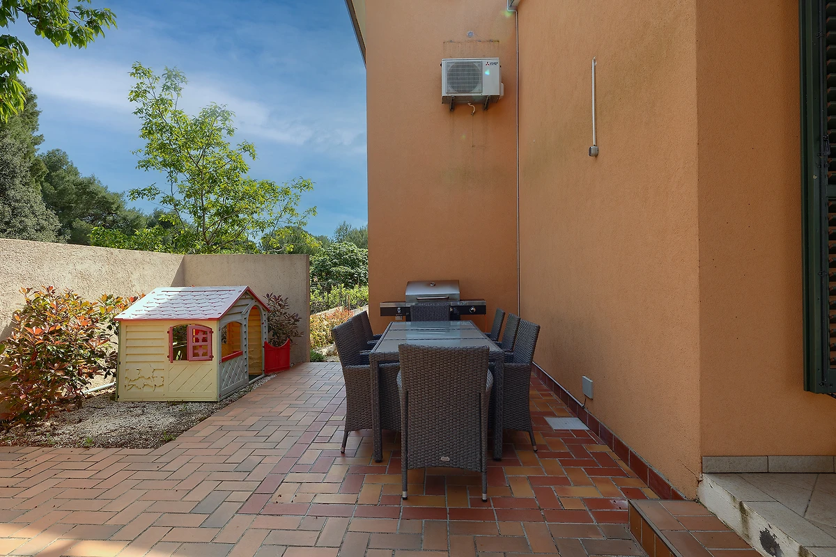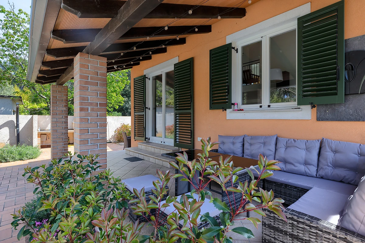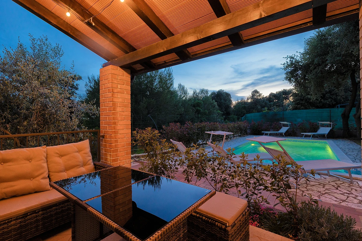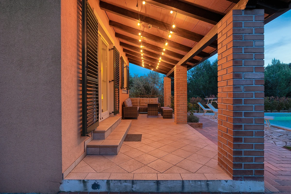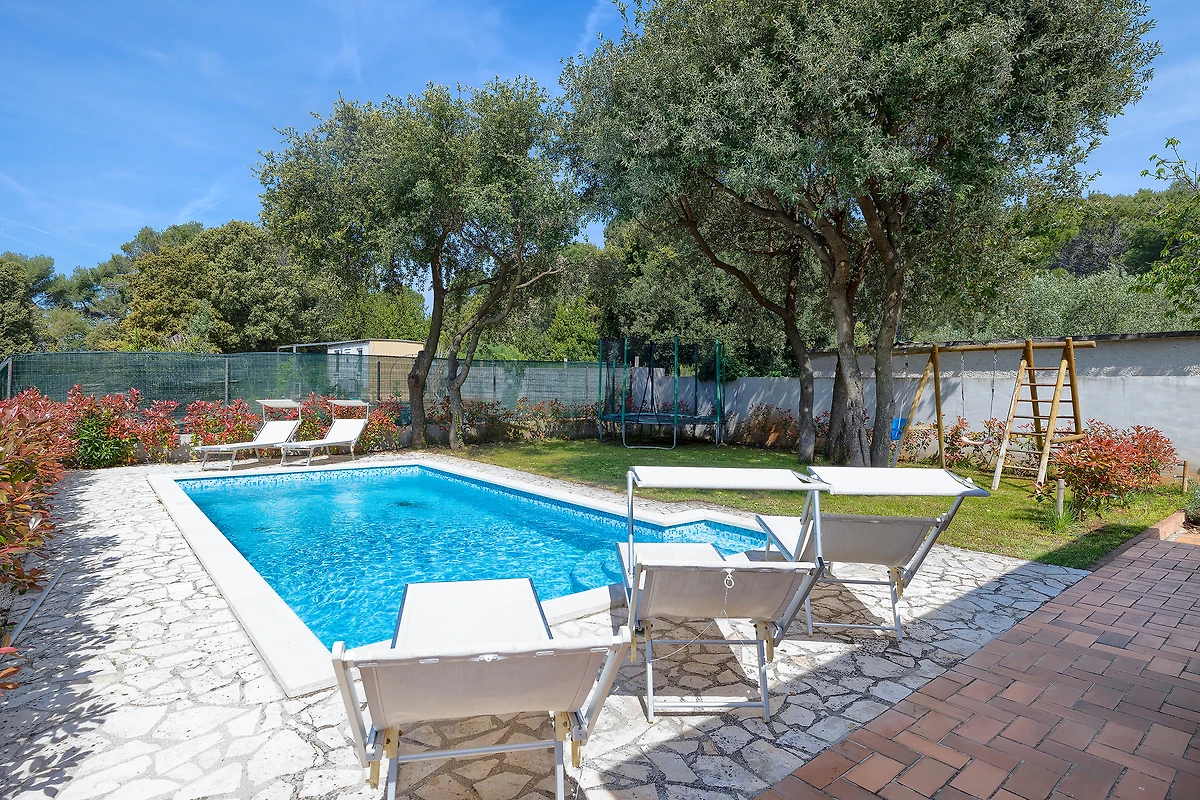 Una bellissima villa con piscina privata si trova in uno dei luoghi turistici più famosi dell'Istria - Medulin. La villa si trova in una strada tranquilla. Questo bellissimo alloggio può ospitare fino a 8 persone e dista solo 1 km dal mare. Puoi anche raggiungere a piedi un ristorante (900 m) e un negozio (950 m). La villa si estende su 650 mq, di cui 130 mq di abitazione. Nel giardino privato si trova una piscina di 35 mq con doccia esterna. Ping-pong, parco giochi per bambini, barbecue con mobili da giardino e un tavolo all'aperto dove mangiare tutti insieme. L'intera casa è climatizzata e dispone di una connessione Wi-Fi gratuita. La villa offre 4 belle e accoglienti camere da letto con 2 bagni. La villa può ospitare fino a 8 persone in 4 camere da letto. La villa offre una vacanza molto tranquilla.