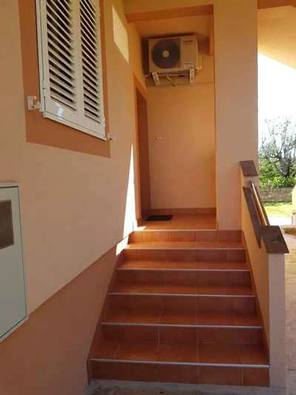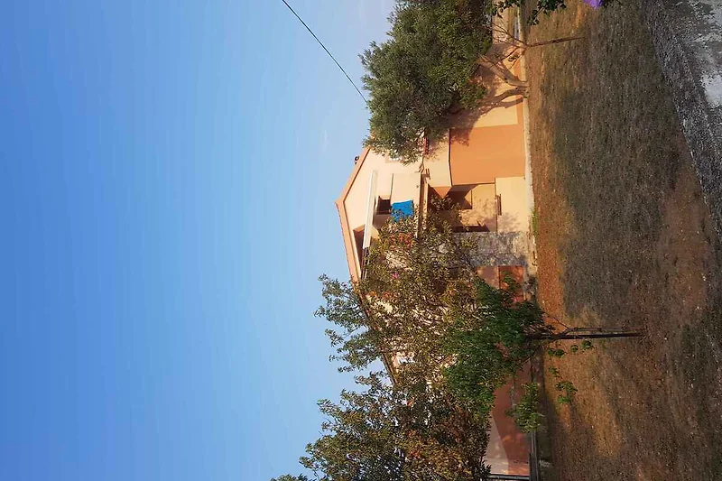 Vrsi, frazione Mulo, 20 m s.l.m. L'appartamento per vacanze si trova su un terreno recintato di 1100 mq con prato e alberi, delimitato da una recinzione. Il locatore non abita nella casa o sulla proprietà. L’accesso avviene direttamente dalla strada principale (asfaltata, lunghezza 3 m). Parcheggio sulla proprietà.