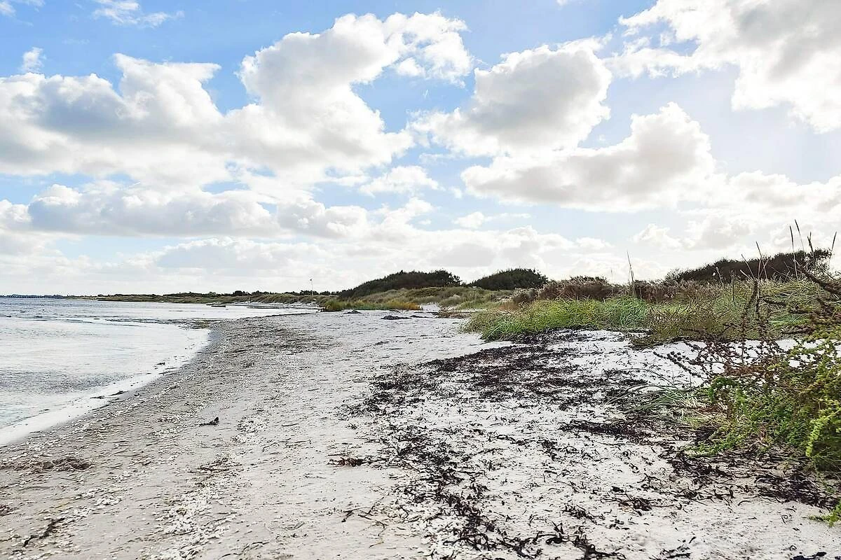 , Angolo cottura(mobile cucina(elettrico), cappa aspirante, caffettiera, lavastoviglie, frigorifero(+ congelatore)), Soggiorno/camera da letto(TV(canali televisivi tedeschi, canali TV danesi), radio), Camera da letto(letto matrimoniale), Camera da letto(4x letto a castello), Bagno(sotto pavimento)(vasca o doccia, lavabo, WC, lavatrice), riscaldamento(elettrico), terrazza, terrazza(coperto), giardino, biliardino, termopompa aria-aria