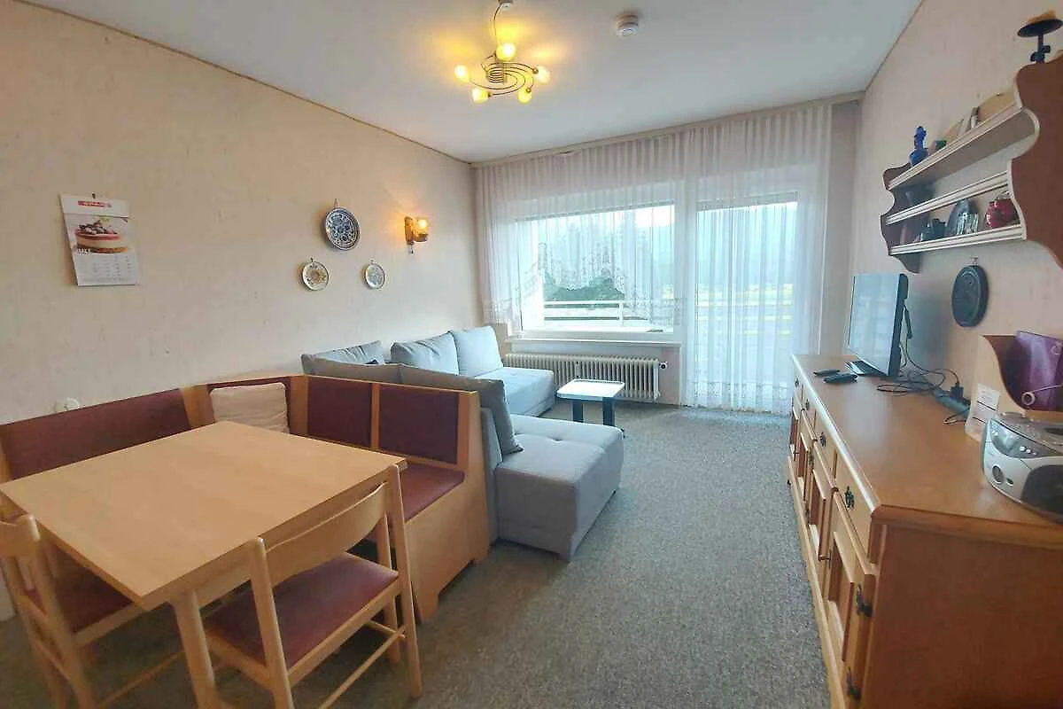 L' appartamento vacanze si trova in un appartamento casa, costruito nel 1970, è stato rinnovato nel 2015 ed è arredato moderno, funzionale e in stile tradizionale. La proprietà si trova in un luogo di villeggiatura. Anche a causa della vista dalla struttura sul bosco e soleggiata posizione ai margini del bosco, il domicilio è popolare. Attrezzature: mobili da giardino e ascensore. Utensili per la pulizia, articoli da toeletta e generi alimentari devono essere portati e non sono forniti.