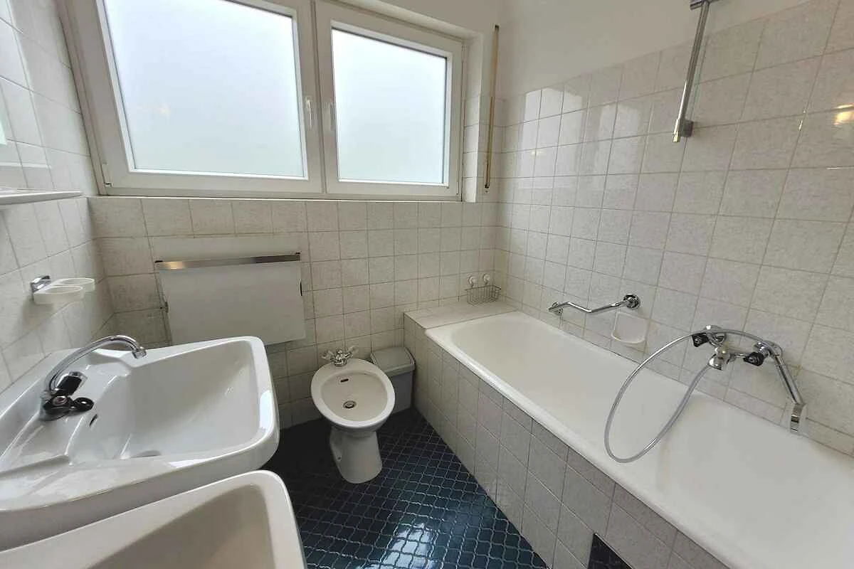 1° piano: Camera da letto (10 mq, camera di passaggio) con 1 letto singolo. Camera da letto (15 mq, camera di passaggio) con 1 letto singolo, 1 letto aggiuntivo su divano letto doppio e TV. Bagno (3 mq) con doccia, 1 lavandino, WC e finestra.