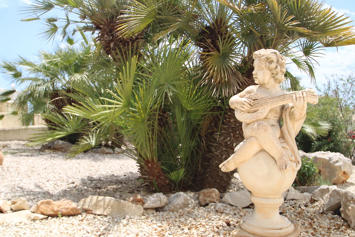 Il giardino è splendidamente paesaggistico con alberi da frutto come il fico, nisperos, arance.