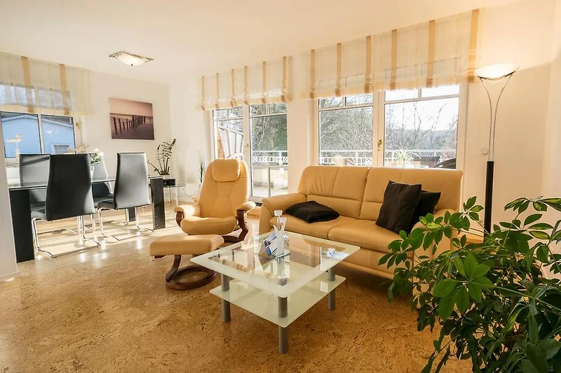 Un ottimo appartamento di alta qualità. Particolarmente pratico è il garage sotterraneo con ascensore direttamente collegato al piano dell'appartamento. Posizione tranquilla vicino alla spiaggia.