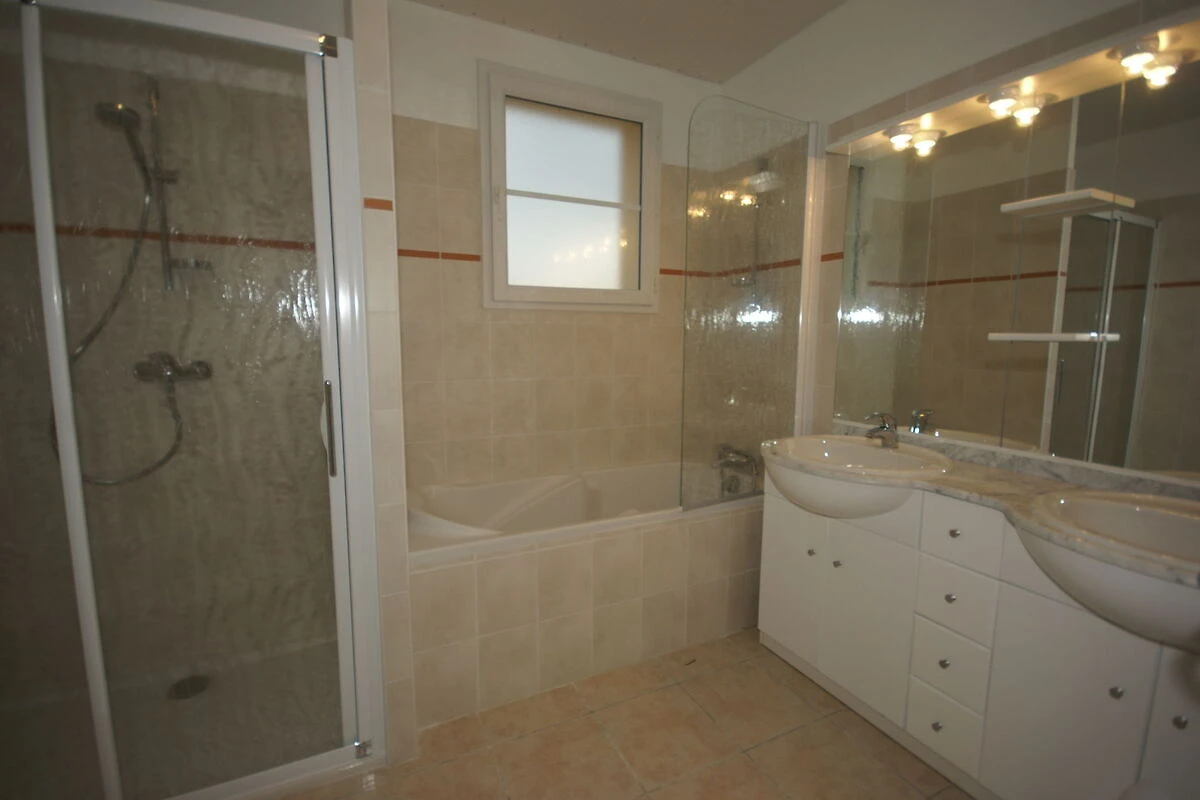 Casa tranquilla con molto spazio all'interno. Terrazza con vista sulla piscina adiacente. Nessun problema con i vicini e le case nelle vicinanze. Tuttavia, un sacco di polvere e ragnatele sulle pareti interne e la doccia non era stata pulita al 100% pulito (ancora nella sua fuga). (Docce multiple erano presenti in casa)