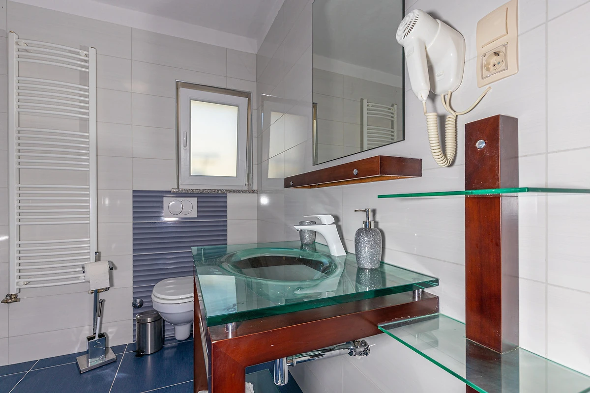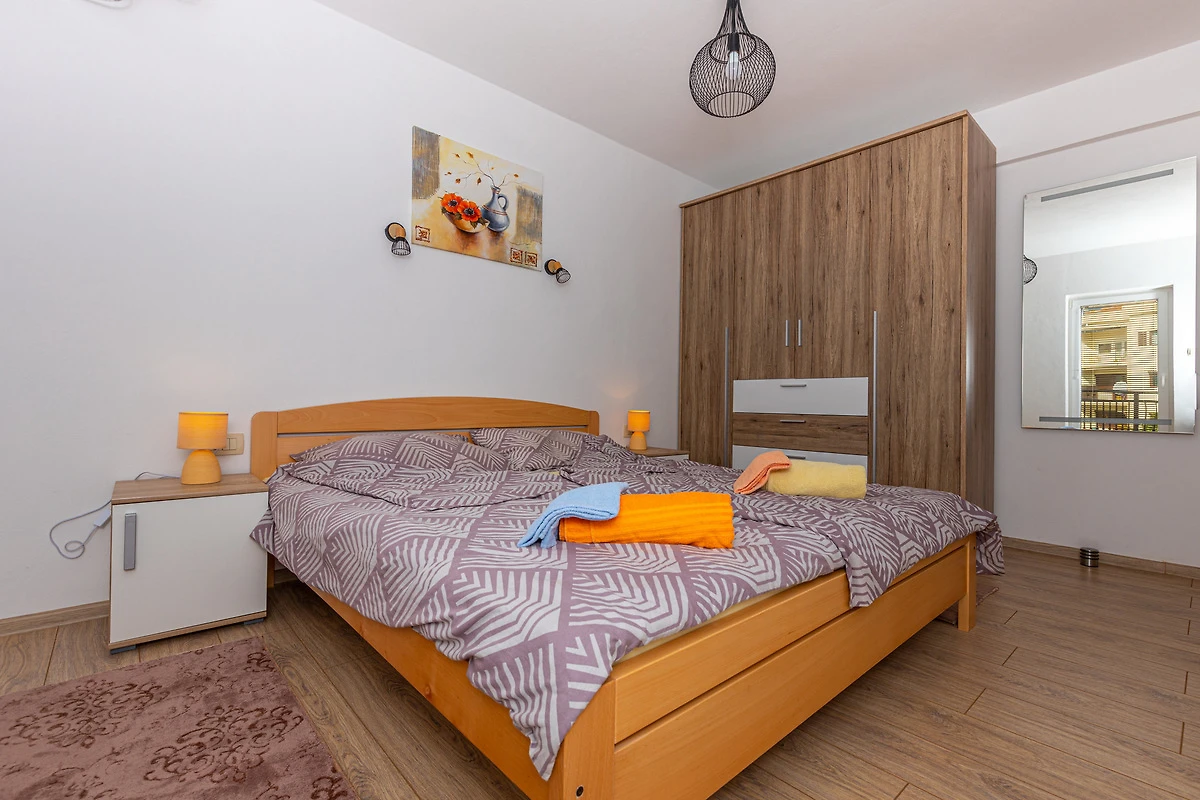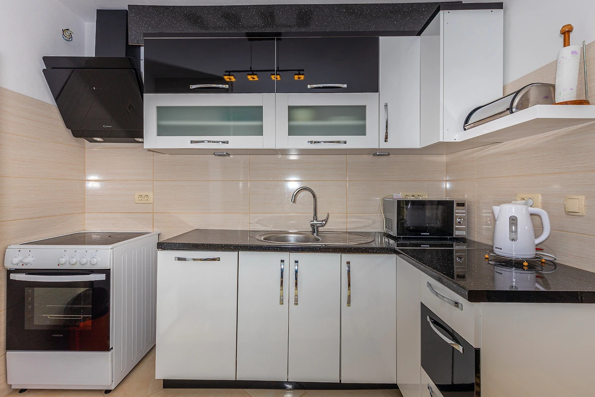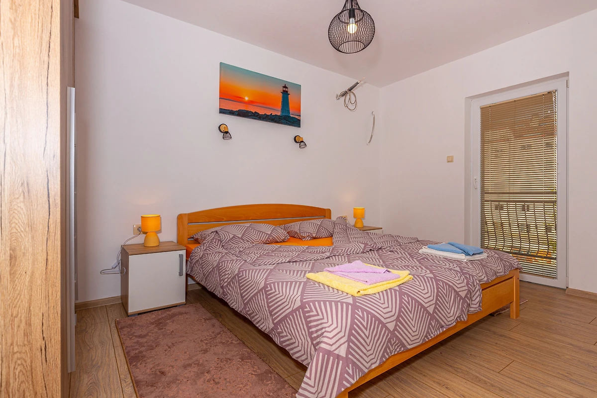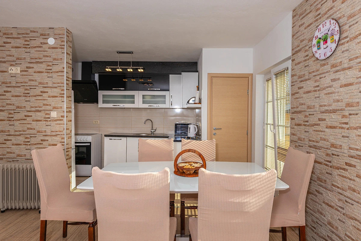 L' appartamento vacanze si trova in una casa unifamiliare, indipendente ed è arredato moderno. La proprietà si trova in periferia. Anche a causa della vista dalla struttura sul mare e tranquilla e soleggiata posizione, il domicilio è popolare. Attrezzature ad uso esclusivo: lettino da sole, doccia da giardino, possibilità di grigliare, terrazza, mobili da giardino e fattoria.