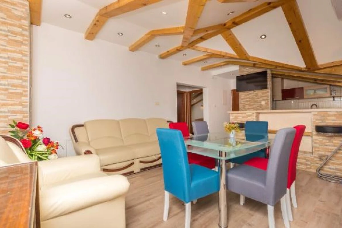 L' appartamento vacanze si trova in una casa unifamiliare, indipendente ed è arredato moderno. La proprietà si trova in periferia. Anche a causa della vista dalla struttura sul mare e soleggiata posizione, il domicilio è popolare. Attrezzature ad uso esclusivo: lettino da sole, doccia da giardino, possibilità di grigliare, terrazza e mobili da giardino.