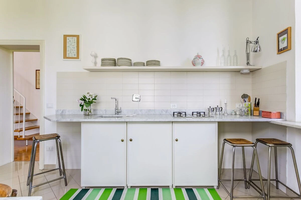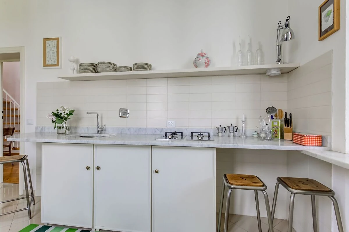 Villa Lazzarino è un luogo meraviglioso nel cuore della storica Pisa. Tutti i monumenti e molti ristoranti e caffè sono a pochi passi. Abbiamo scelto la posizione con tutta la famiglia (4 generazioni, 9 persone) grazie a questo grande vantaggio, oltre al fatto che in 20 minuti in auto si possono raggiungere delle bellissime spiagge. La casa stessa è una bella villa dall'inizio del XIX secolo, piena di storia. Valeria è un’ottima ospite. È utile con tutto ciò di cui hai bisogno per il tuo soggiorno, sia in casa che a Pisa e nei dintorni. Ha sempre un consiglio per un buon ristorante o la migliore spiaggia. Ci siamo sentiti molto ben accolti ed è stato un piacere unirci a lei per un bicchiere di vino la sera. A proposito, è anche una brava cuoca, cosa che abbiamo sperimentato l'ultimo giorno quando ha preparato la cena per tutti noi. Le stanze sono spaziose, i materassi sono comodi e tutto è pulito e funziona bene nonostante sia un edificio storico. Oltre all'appartamento al primo e secondo piano, avevamo un'ulteriore cucina con un grande tavolo nel giardino. Questo era il luogo dove ci riunivamo tutti la sera per cena. Molto graditi erano i zanzariere su finestre e porte che permettevano di far entrare un po' di aria fresca nella notte. Le stanze sotto il tetto hanno aria condizionata. Alla grande gioia delle nostre nipoti, c'erano 5 adorabili conigli saltellanti nel giardino. Il bellissimo giardino piantato può essere utilizzato dagli ospiti e ha un'amaca per rilassarsi.