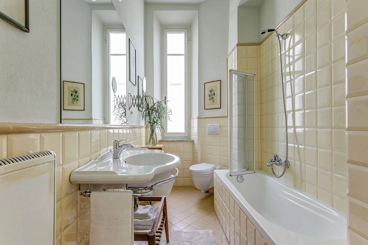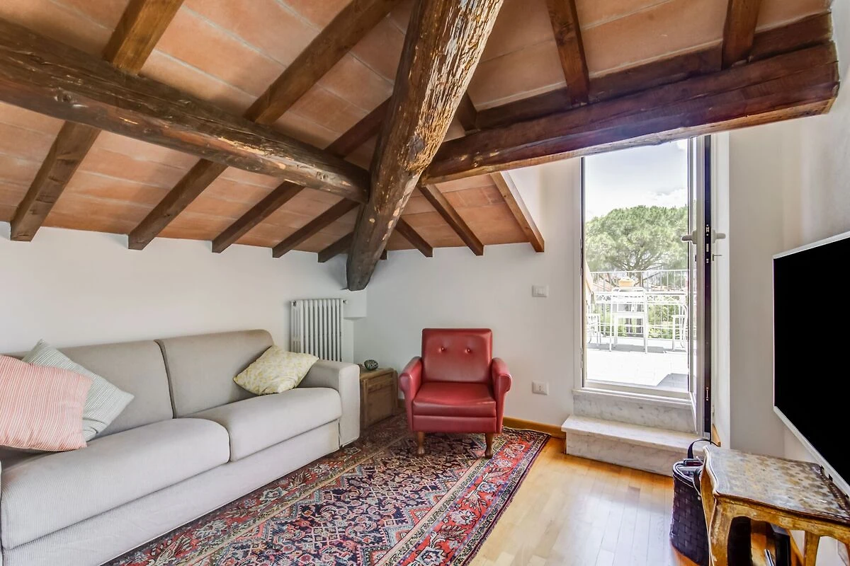 Nascosta in una tranquilla strada residenziale a pochi passi dall'iconica Torre Pendente di Pisa, questa affascinante villa per vacanze di inizio XX secolo offre il perfetto equilibrio tra eleganza storica e comfort moderno. Il suo giardino privato, le terrazze ombreggiate e gli accoglienti spazi esterni creano un'atmosfera di campagna proprio nel cuore della città, rendendola una base ideale per famiglie o gruppi desiderosi di esplorare i tesori della Toscana. Con attrezzature da gioco in giardino e un seggiolone a disposizione dei più piccoli. Che sorseggiate vino sulla terrazza panoramica, cuciniate nell'ampia cucina o vi godiate una gita in bicicletta (noleggiabile a pochi metri di distanza), ogni momento qui unisce comfort e cultura.
