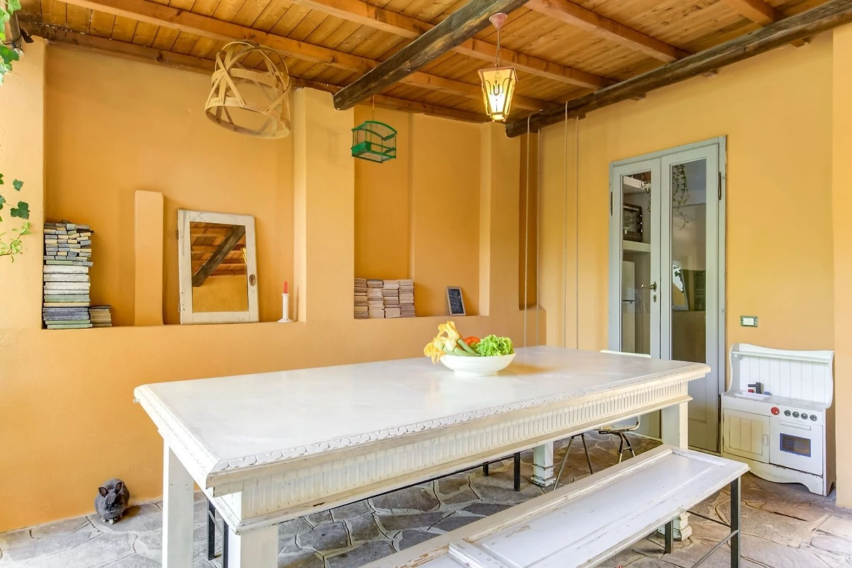 Villa Lazzarino è un luogo meraviglioso nel centro storico di Pisa. Tutti i monumenti e molti ristoranti e caffè sono raggiungibili a piedi. Abbiamo scelto la località con tutta la famiglia (4 generazioni, 9 persone) per questo grande vantaggio oltre al fatto che in 20 minuti di auto si possono raggiungere alcune belle spiagge. La casa è una bella villa dell'inizio del XIX secolo, ricca di storia. Valeria è un'ottima padrona di casa. È disponibile per tutto ciò di cui avete bisogno per il vostro soggiorno sia in casa che a Pisa e dintorni. Ha sempre un consiglio per un buon ristorante o per la spiaggia migliore. Ci siamo sentiti molto benvenuti ed è stato un piacere unirsi a lei per un bicchiere di vino la sera. Tra l'altro è anche un'ottima cuoca, come abbiamo potuto constatare l'ultimo giorno quando ha preparato la cena per tutti noi. Le camere sono spaziose, i materassi sono confortevoli e tutto è pulito e ben funzionante nonostante si tratti di un edificio storico. Oltre all'appartamento al primo e al secondo piano c'era un'ulteriore cucina con un grande tavolo in giardino. Questo era il luogo in cui ci riunivamo tutti la sera per la cena. Molto gradite sono state le zanzariere alle finestre e alle porte che hanno permesso di prendere un po' d'aria fresca durante la notte. Le camere sotto il tetto sono dotate di aria condizionata. Infine, con grande gioia delle nostre nipoti, c'erano 5 adorabili coniglietti che saltellavano in giardino. Il bellissimo giardino piantumato può essere utilizzato dagli ospiti e dispone di un'amaca per rilassarsi.