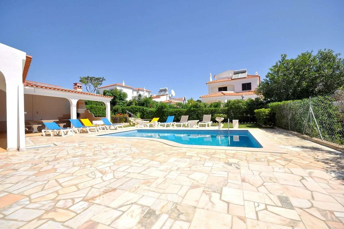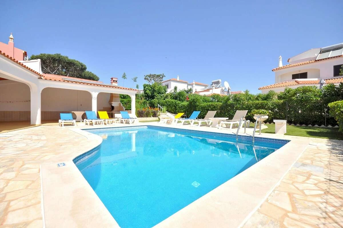 Una villa indipendente e ampia a due piani progettata nel tipico stile architettonico portoghese, la Correia combina la semplicità privilegiata e il fascino del vecchio mondo grazie al suo arredamento sobrio e da un certo numero di funzionalità accoglienti. Un camino tradizionale in pietra offre un punto focale nella comoda sala da pranzo seduta e le camere sono disposte con bei letti in legno scuro e armadi che iniettano eleganza e carattere. Le porte della sala da pranzo si collegano a una terrazza coperta, che conduce al grazioso giardino e alla piscina. Intorno all'acqua, i prati ben curati e le terrazze pavimentate offrono ampio spazio per gli adolescenti di sole per prendere i loro posti, e c'è un barbecue fornito per quando si desidera praticare le classiche ricette portoghesi del sole. Le basse coperture che lo screening dei motivi aggiungono un tocco finale di privacy.