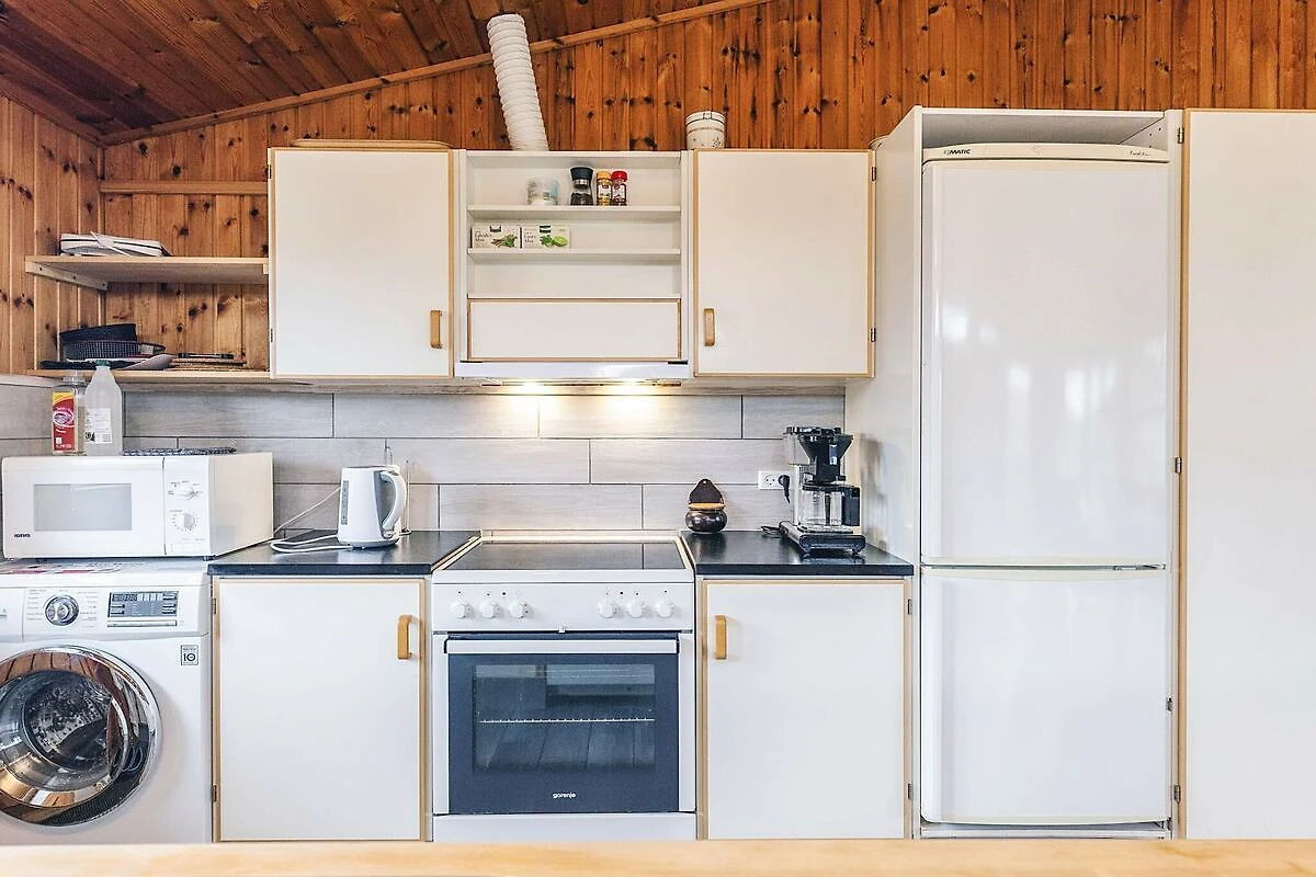 Angolo cottura(mobile cucina(elettrico), cappa aspirante, caffettiera, forno a microonde, lavastoviglie, frigo con congelatore), Soggiorno/camera da letto(TV, radio, seggiolone), Camera da letto(letto matrimoniale, letto per bambini), Camera da letto(2x letto singolo), Bagno(sotto pavimento)(asciugabiancheria, vasca o doccia, lavabo, WC, lavatrice), riscaldamento(elettrico), terrazza, barbecue, termopompa aria-aria