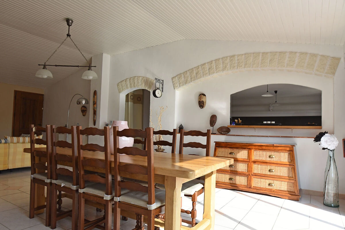 La casa dispone di aria condizionata e riscaldamento per interni piacevoli e anche un soggiorno-sala da pranzo con tavolo da pranzo a 10 posti per godersi i pasti e guardare la TV. I bambini hanno un letto a castello e seggiolone. Possono giocare in giardino ed esplorare le attrezzature di gioco. Prepara il delizioso barbecue dalla terrazza. Il parcheggio è anche disponibile.