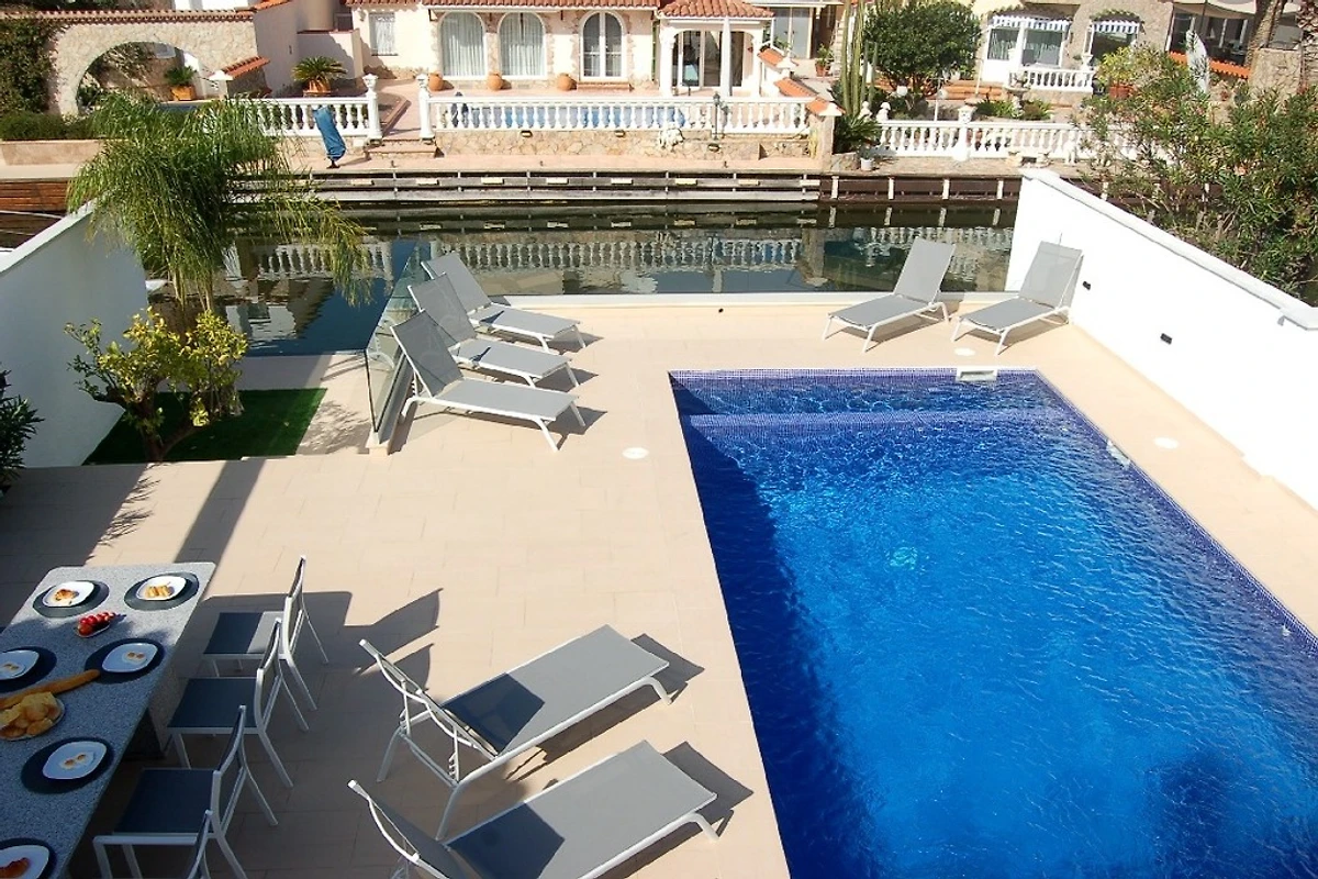 Eccezionale, villa speciale per le esigenze più elevate con piscina a sfioro sul canale con il nostro ormeggio fortificato, aria u. Internet per un massimo di 10 persone.