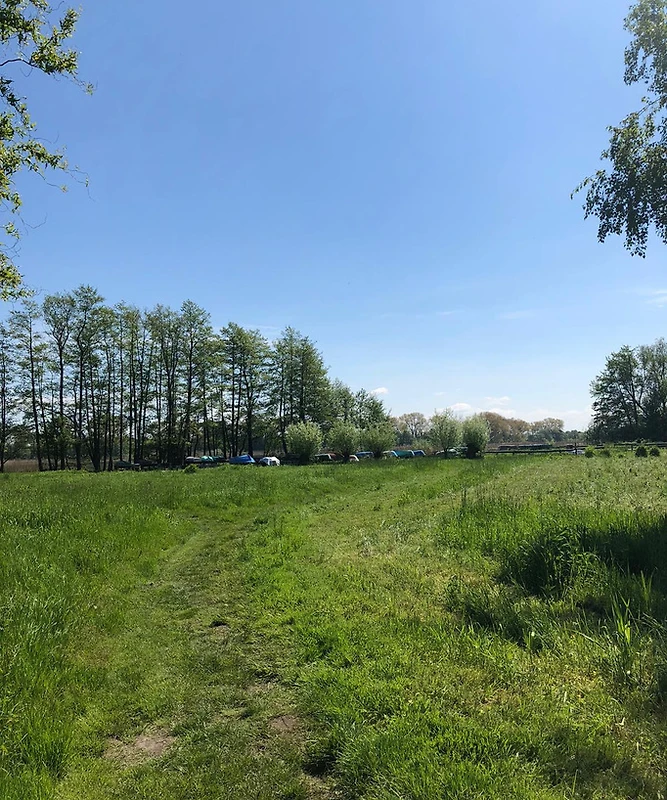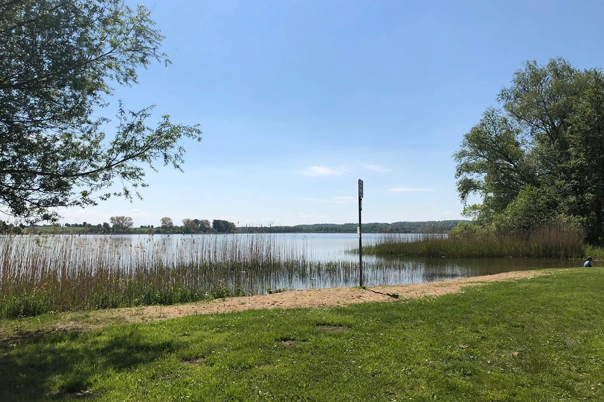 Un bel po' più avanti c'è un'altra baia, protetta dal sole da salici - la spiaggia per cani, che il nostro cane ha goduto ogni giorno. Siamo stati a camminare nei dintorni lungo il Warnow e vicino a vari laghi, anche attraverso vaste praterie e boschi - un sogno, super bello!!