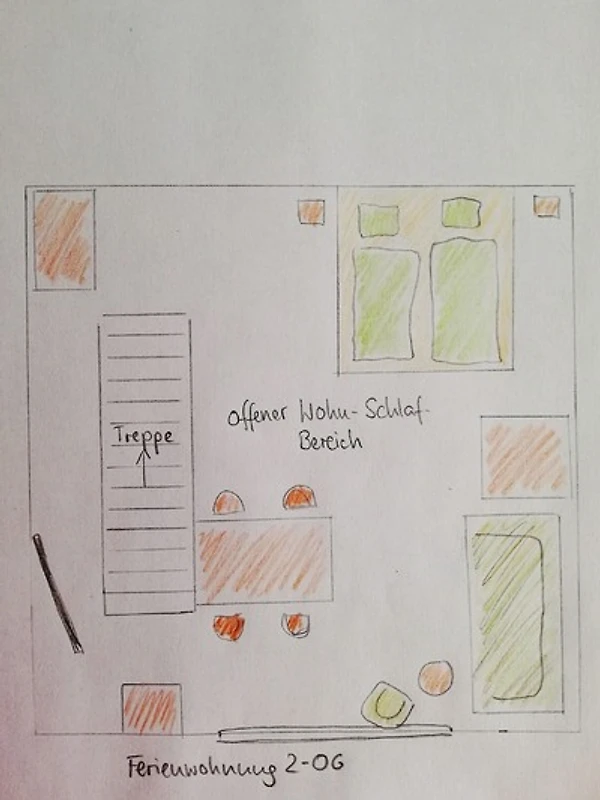 L'appartamento nella vecchia casa a graticcio è circondato da un giardino rigoglioso, che crea anche distanza dalla strada. Durante il giorno è moderatamente trafficata e di notte non abbiamo avvertito alcun rumore del traffico. L'appartamento è stato amorevolmente ristrutturato e arredato, e abbiamo dato solo un stelle in meno per l'arredamento perché il forno si è rivelato essere un mini forno della dimensione di un microonde. Una categoria di offerta "Mini forno" sembra non essere prevista per l'arredamento della cucina e nel testo descrittivo abbiamo probabilmente trascurato il "Mini". In generale, ci siamo sentiti molto bene e gli ospiti sono molto cordiali e sempre disponibili. Ci piacerebbe trascorrere nuovamente le nostre vacanze qui.