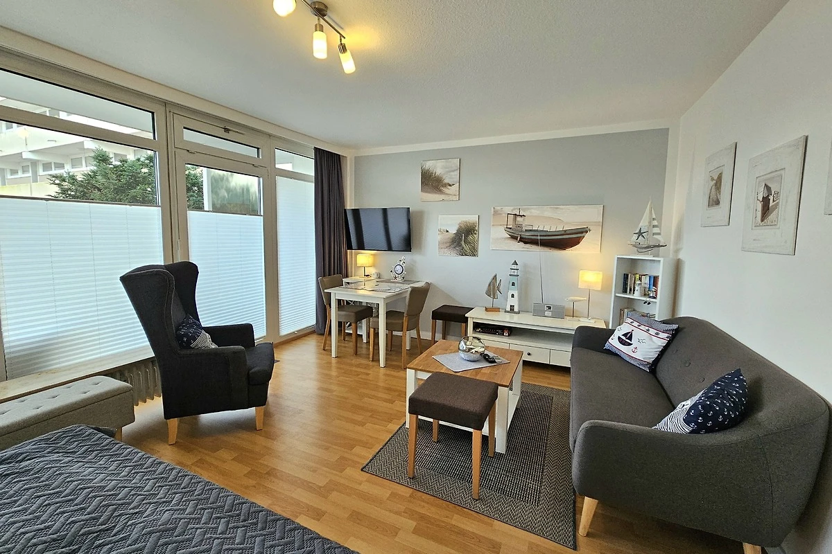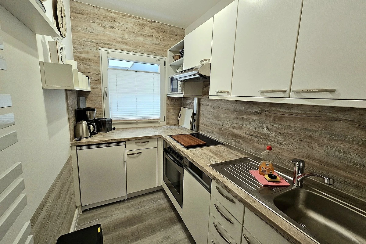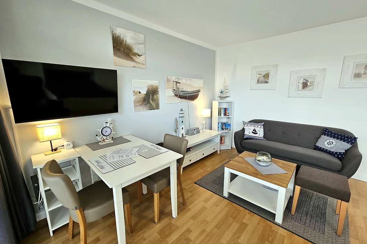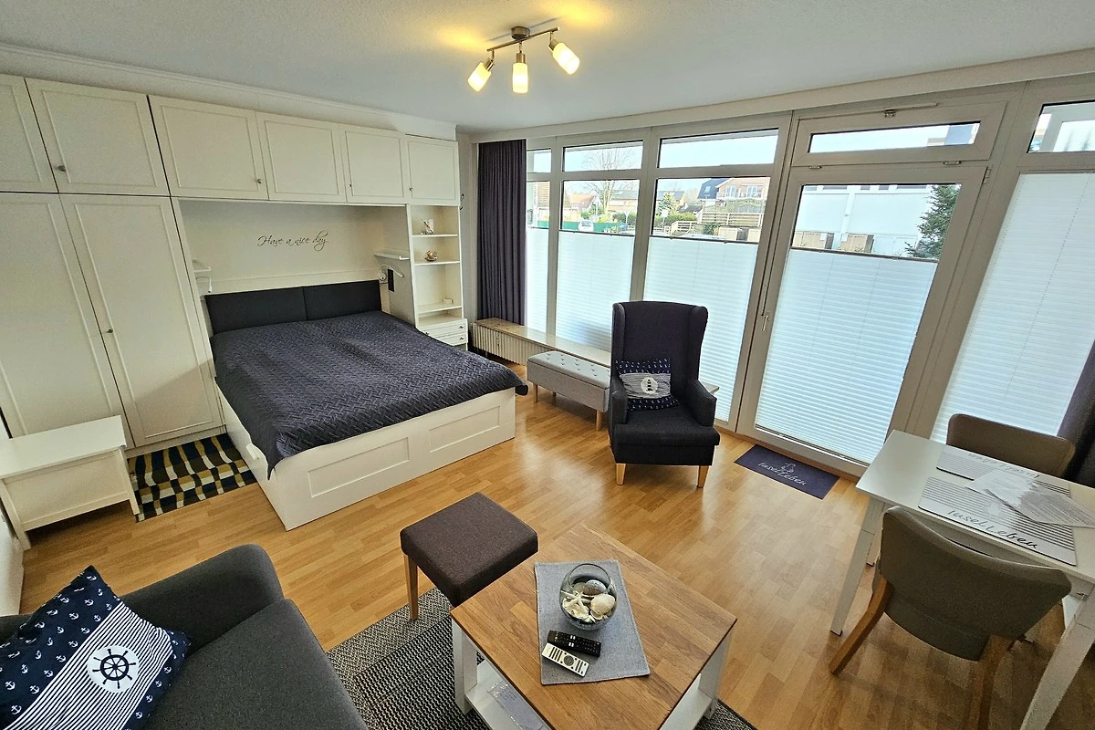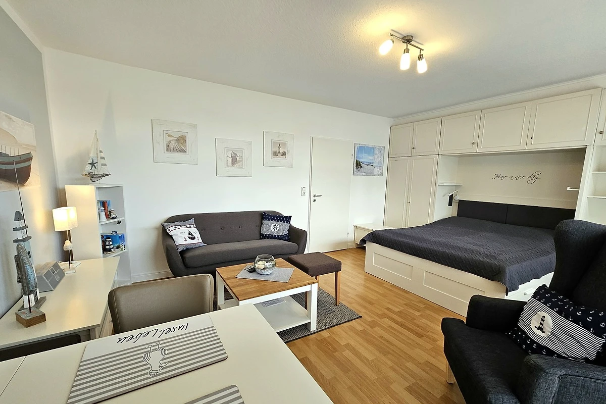 Una piccola ma bella appartamento che è completamente sufficiente per due persone con un animale domestico. Tutti gli utensili domestici necessari sono presenti. La spiaggia è molto vicina. Le possibilità di shopping possono essere fatte a piedi. Una posizione molto bella e tranquilla. L'intero complesso residenziale è molto pulito e ben curato. Quest'anno siamo stati 4 volte in questo appartamento perché è molto bello.