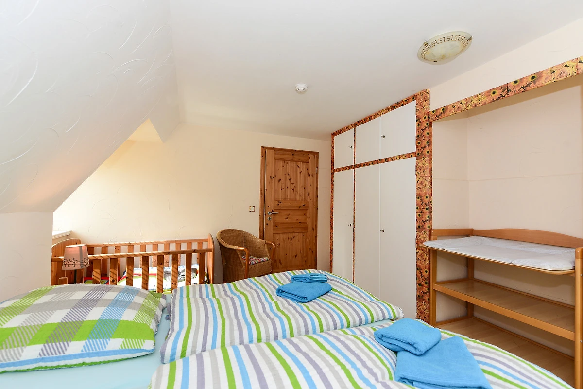 Una piccola ma deliziosa sistemazione in ottima posizione per famiglie. I bambini si sono divertiti molto, poiché nel nostro appartamento in soffitta c'è una stanza giochi completa e proprio dietro la casa c'è un meraviglioso e grande parco giochi. La spiaggia è a massimo 10 minuti.