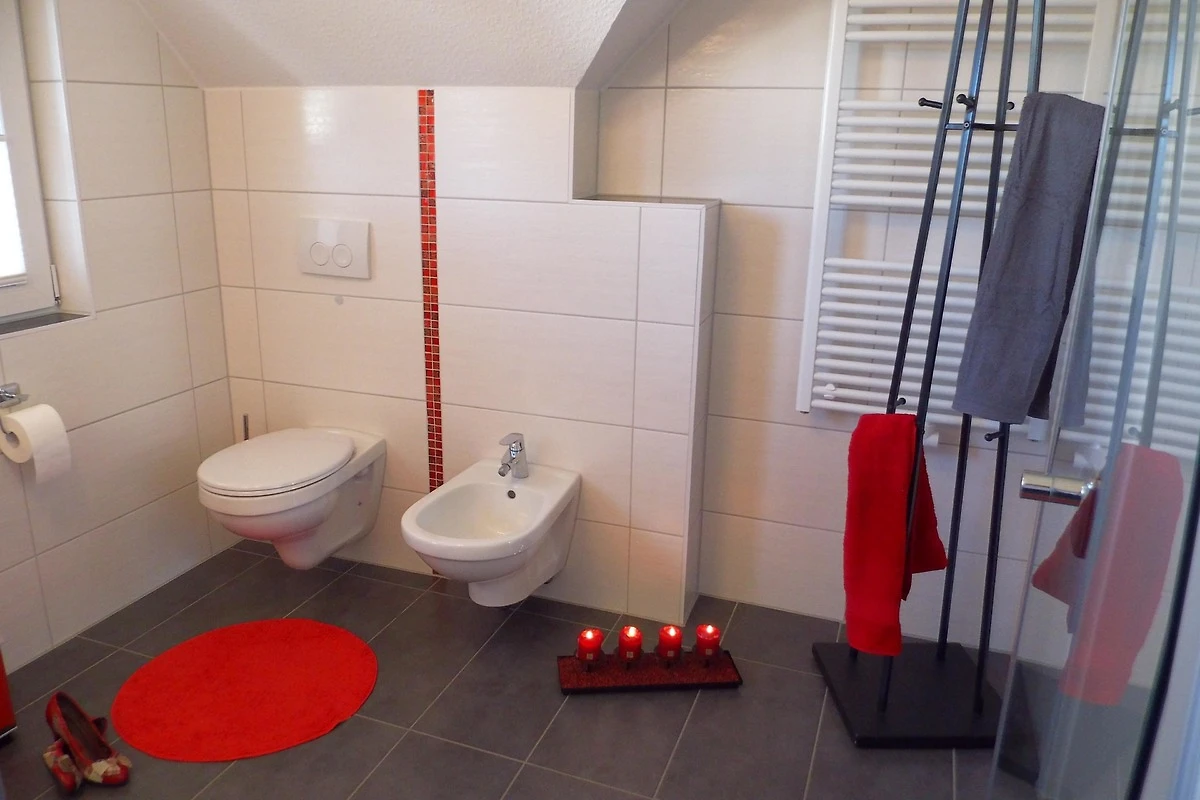 * Schermo per la privacy verso la strada insufficiente. Si sta come su un piatto da portata. * Una teglia sarebbe ancora auspicabile in cucina. * Lo scarico della doccia al piano superiore era così intasato che l'acqua non defluiva e si riversava nell'area del bagno. Ho effettuato la pulizia da solo e ho liberato lo scarico intasato dai capelli. Dopo era di nuovo a posto. Dovrebbe quindi essere controllato e pulito più spesso.