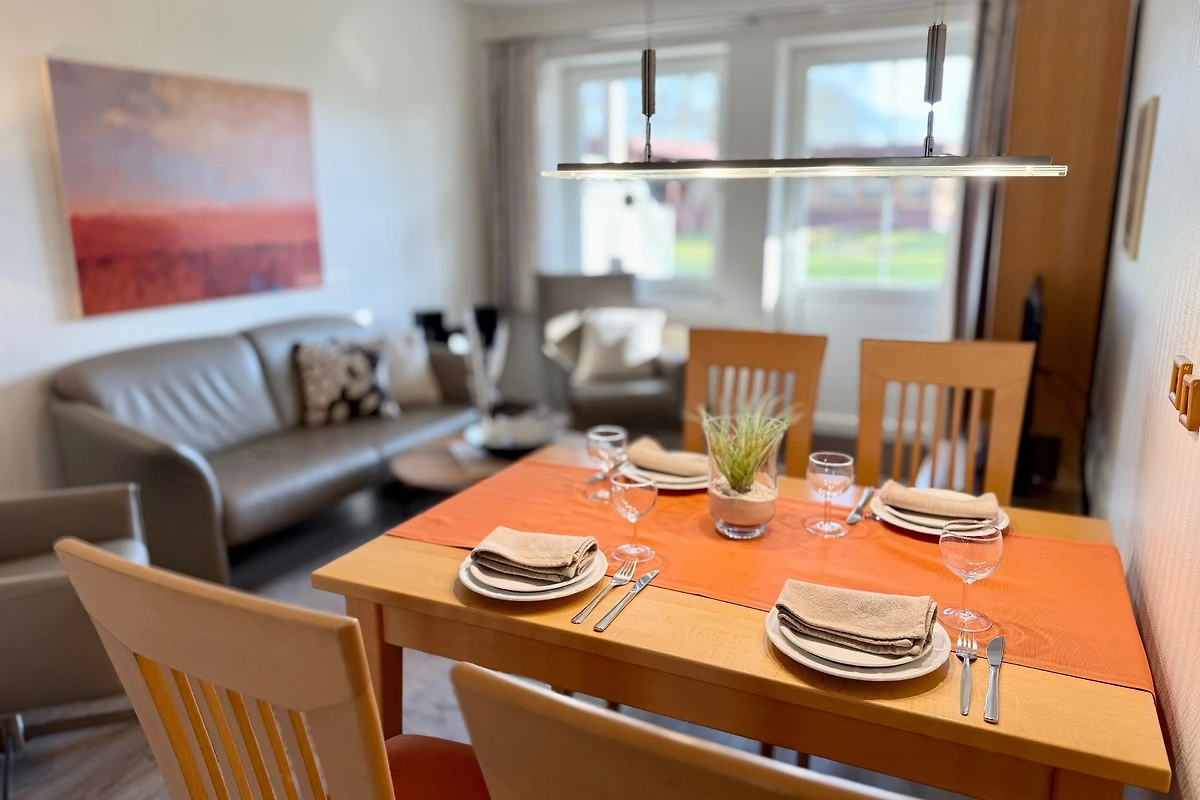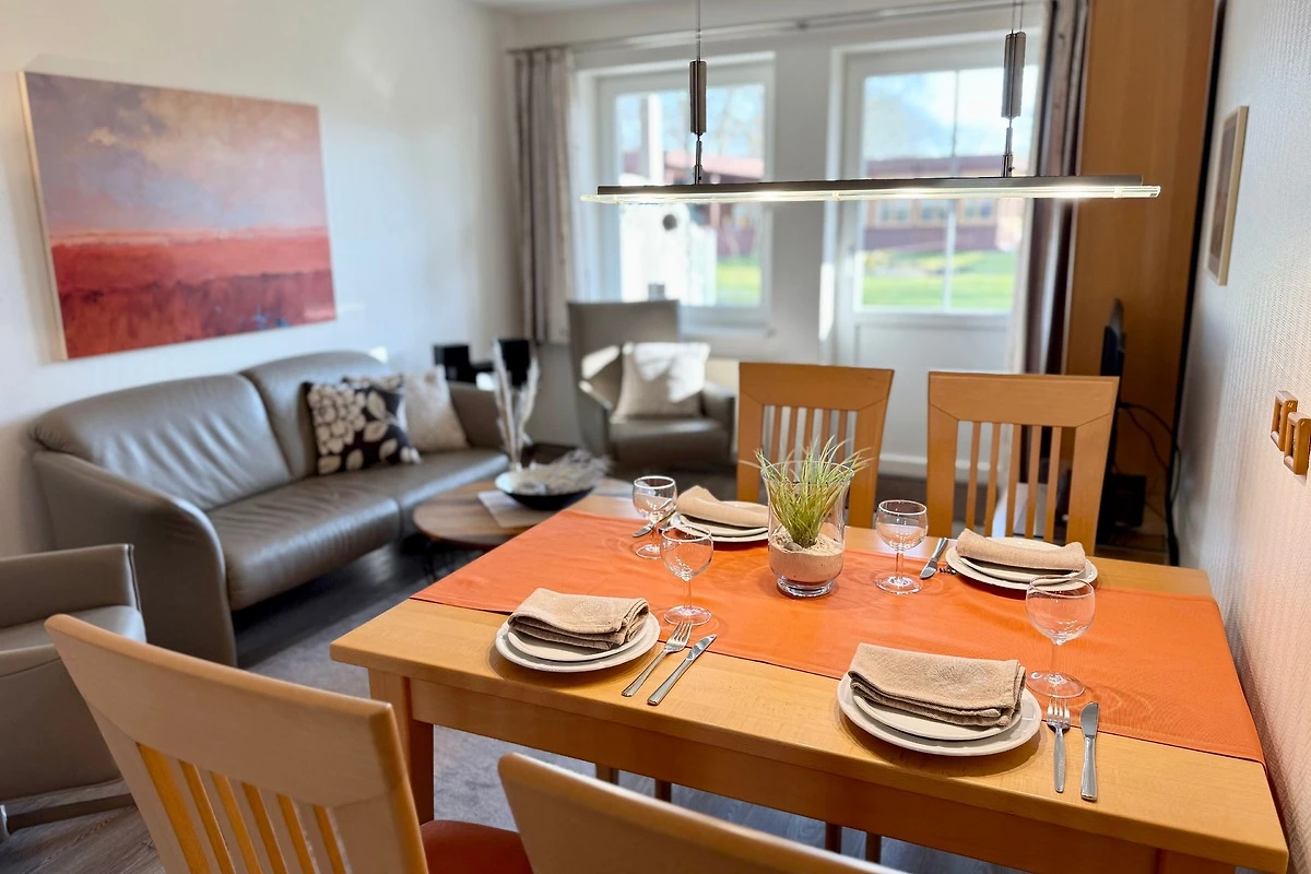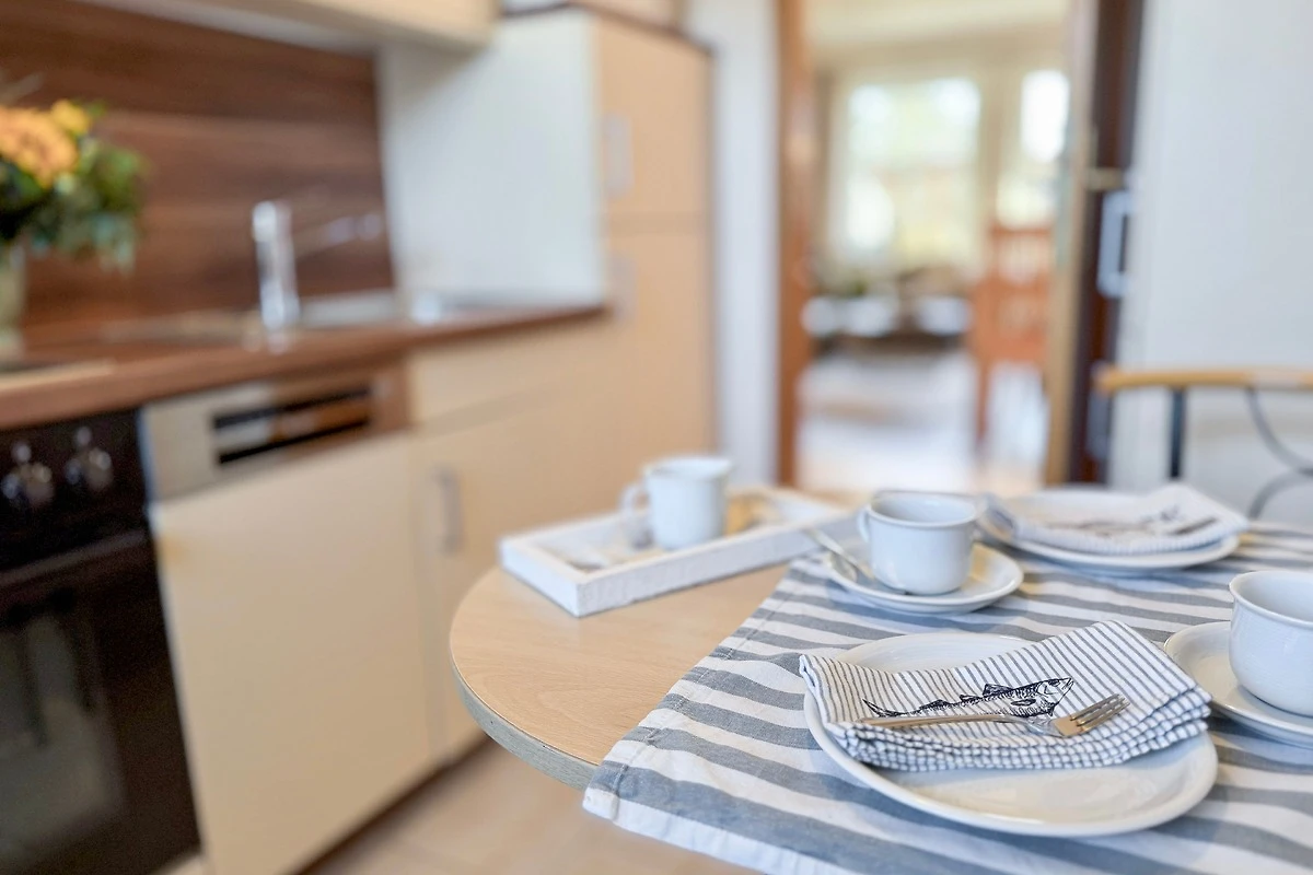 Dal 09 al 16 aprile come ospite nella Landhaus Voss, Fehmarn, OT Staberdorf. Appartamento per vacanze arredato in modo semplice ma molto accogliente. La posizione è ideale, a patto che non si desideri trascorrere le vacanze direttamente in un centro città. La breve distanza per la città più vicina per fare shopping si percorre rapidamente in bicicletta. In compenso, intorno all'appartamento per vacanze c'è pura natura, dove può anche capitare di vedere un cervo sul prato. Il breve tragitto verso l'acqua si gode come una passeggiata rilassante. Particolarmente degna di nota è la cordialità e la disponibilità al servizio dei proprietari. Raccomandato senza riserve e prenoteremo di nuovo.
