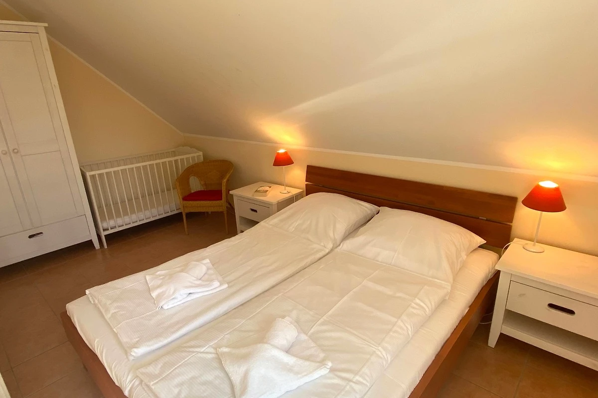 Buona dotazione con carrelli, biciclette, grill, asciugacapelli, stoviglie e posate per bambini, ecc.. In cucina sarebbe utile avere una teglia per il forno. Abbiamo potuto preparare in modo simile su una teglia da forno. E delle tende che lasciano passare ancora meno luce sarebbero ottime nelle camere da letto, poiché nei mesi estivi è molto lungo e presto chiaro.