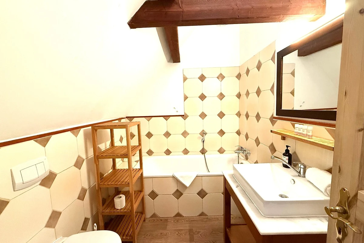 Bellissima vecchia casetta, che già da sola per l'età ha il suo fascino. Tuttavia potrebbe essere ancora decisamente più affascinante con - un arredamento in linea con lo stile - e un aspetto esteriore un po' più curato. Allora si potrebbe sicuramente "sorvolare" molto più facilmente sulla rumorosità della casa. Noi ce la siamo goduta - tuttavia il proprietario dovrebbe fare attenzione e investire - ci sono già molte altre belle case vacanze sull'isola, che sono sicuramente "charmant" da abitare...
