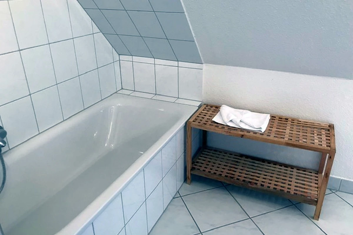 I mobili da giardino erano molto usurati. Nella cucina mancavano utensili importanti come il cucchiaio di legno. Inoltre, era urgentemente necessario un imbiancatura in casa. Al primo piano, davanti al bagno, il pavimento era desolato. La porta d'ingresso si bloccava e si chiudeva solo con fatica. CONCLUSIONE: L'appartamento ha urgentemente bisogno di una ristrutturazione.