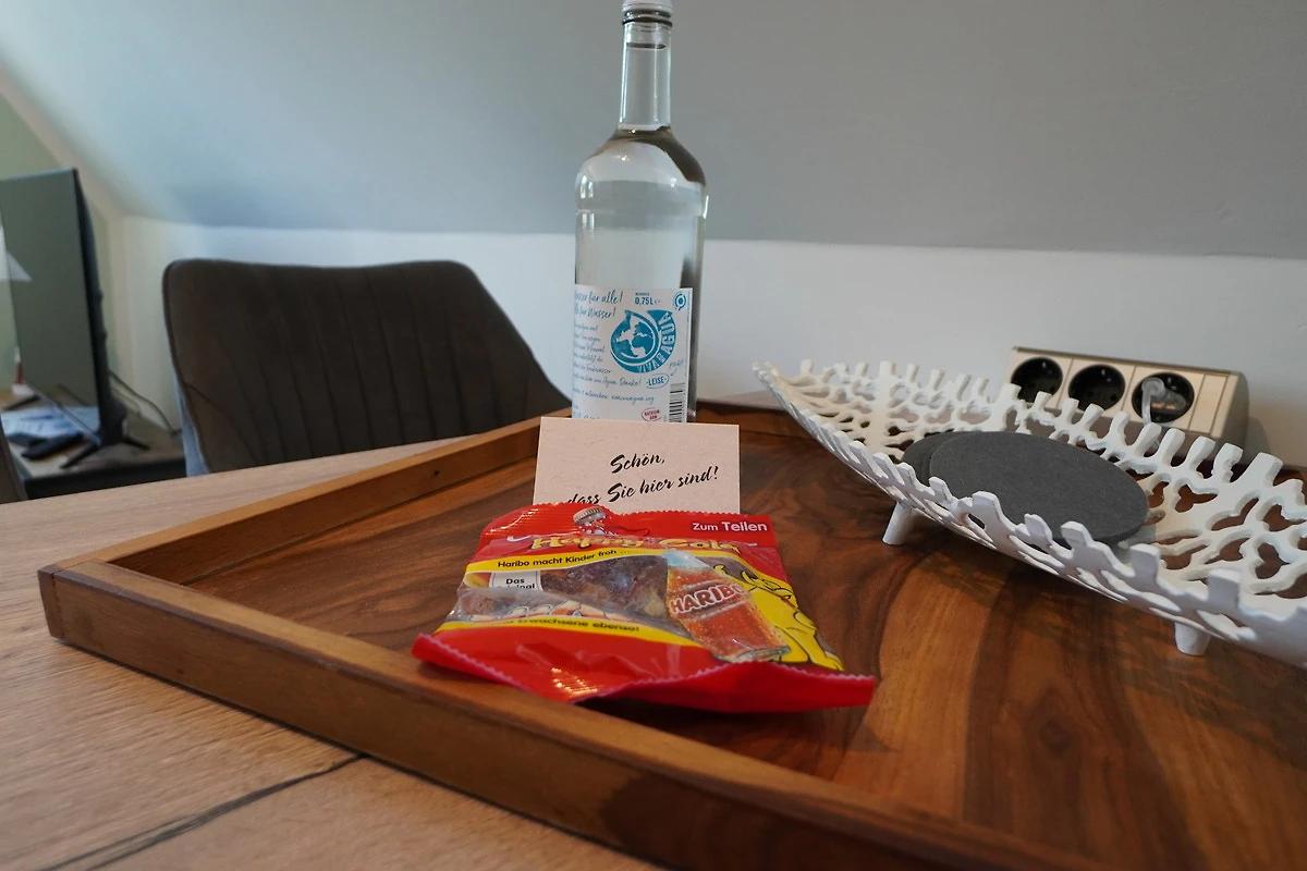 Dove si dovrebbe cominciare quando si è semplicemente entusiasti e grati per una bella vacanza, in cui non c'è davvero niente da segnalare. Dalla procedura di prenotazione fino alla fine del viaggio, siamo stati super supportati come famiglia dal servizio vacanze e dalla nostra proprietaria. Poiché non è necessario un traghetto in ogni vacanza, siamo stati molto grati per i suggerimenti qui. Poiché siamo arrivati con la nostra bambina di due anni, abbiamo potuto fornire solo un momento di arrivo approssimativo. Qui si è reagito in modo flessibile, abbiamo potuto ritirare le chiavi dell'appartamento senza contatto presso l'ufficio del servizio vacanze e subito sistemarci nella nostra sistemazione. Qui siamo rimasti totalmente colpiti. Abbiamo trovato un appartamento arredato super modernamente con tutti i confort e ho subito detto a mia moglie: "Qui ci si sente già a casa nonostante sia in vacanza!" L'arredamento corrispondeva a ciò che oggi si potrebbe definire assolutamente alla moda. Anche la promessa che i cani siano assolutamente benvenuti in questo appartamento è stata rispettata. Nell'area d'ingresso si trovavano, accanto ai sacchetti per i cani obbligatori, anche diversi materiali informativi per escursioni con il cane a Wyk e dintorni. Il nostro Fox Terrier ha subito preso possesso dell'area giardino separata appositamente per il nostro appartamento. Si potrebbe anche tranquillamente lasciare il cane da solo in giardino per un'ora. Il nostro volpe trova normalmente ogni spiraglio, ma qui non ha avuto assolutamente alcuna possibilità. Anche il pericolo che qualcuno lanci qualcosa oltre la rete (cosa che purtroppo accade sempre nella nostra patria) non è presente, poiché il giardino si trova dall'altra parte della strada e può essere raggiunto solo attraverso l'appartamento per vacanze. Il nostro cane ha quindi goduto della sua vacanza a pieno. Dopo le nostre gite in spiaggia (circa 15 min) o nell'entroterra, abbiamo potuto rilassarci su mobili comodi con Netflix e una buona lettura. A pranzo spesso ci procuravamo cibo dal servizio di catering dietro l'angolo, assolutamente conveniente. Oltre ai più moderni elettrodomestici da cucina, era presente anche una lavatrice con asciugatrice, il che è stato molto utile per noi come famiglia con un bambino piccolo. Solo per forma va detto che per quanto riguarda la pulizia non avevamo nulla, ma proprio nulla da eccepire. In generale, sembra che le persone a Föhr siano semplicemente più cordiali e felici, il che ora possiamo assolutamente comprendere. La casa Kiehlwasser sarà sempre la nostra prima scelta, non c'è di meglio. Ringraziamo ancora la famiglia Hengstenberg per questa vacanza indimenticabile e non vediamo l'ora di tornare. I migliori saluti, famiglia Ahne da Weimar.