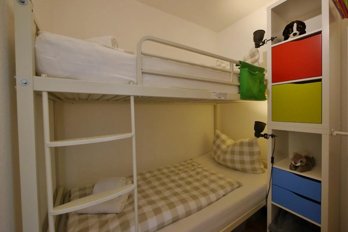 - Cucina in nicchia con lavastoviglie, piano cottura in vetroceramica a 2 fuochi, forno, frigorifero, macchina da caffè, tostapane, bollitore, frullatore e assortimento di spezie - Camera da letto con letto alla francese (140x200); ampio armadio - Cubo letto separato con letto a castello nel soggiorno - Culla/seggiolone su richiesta.