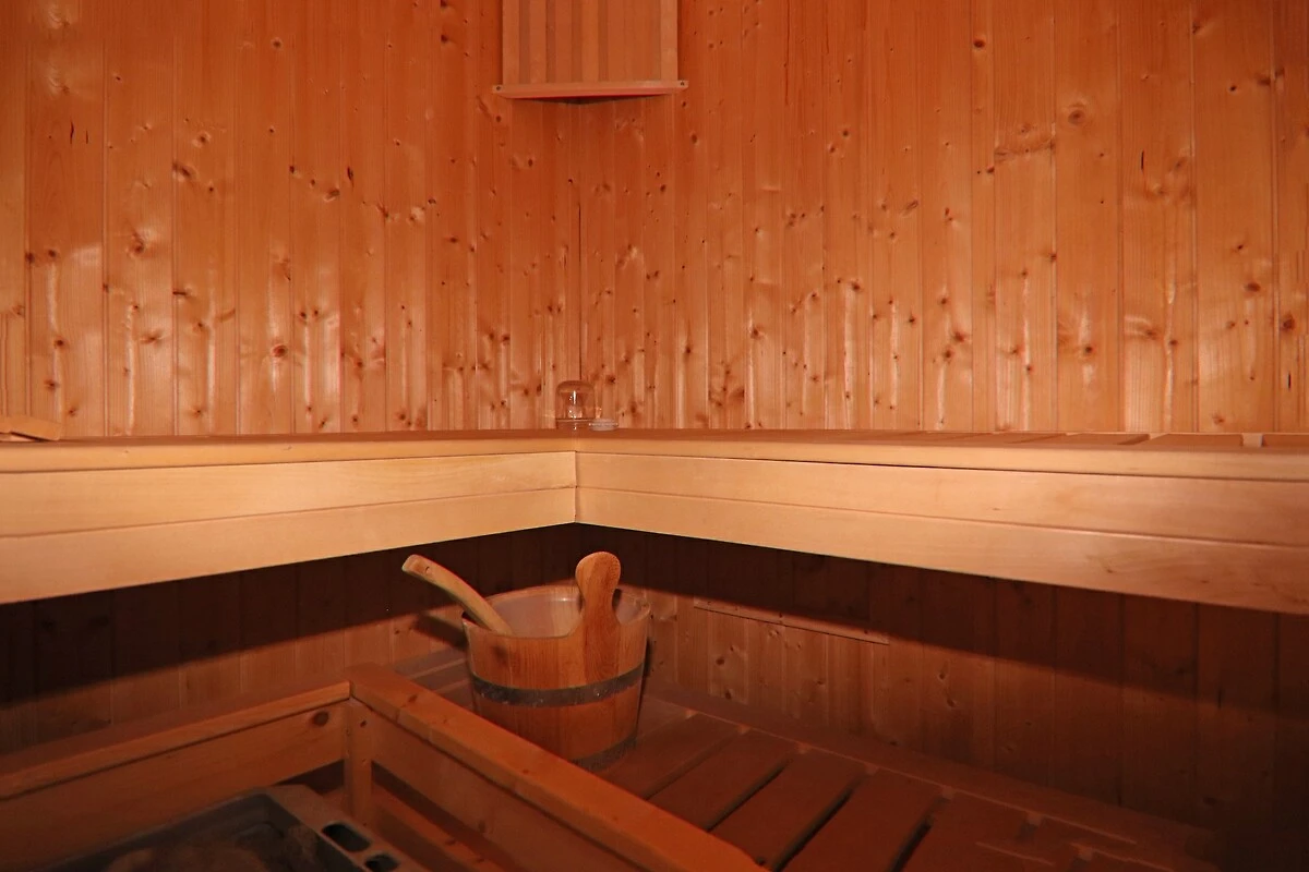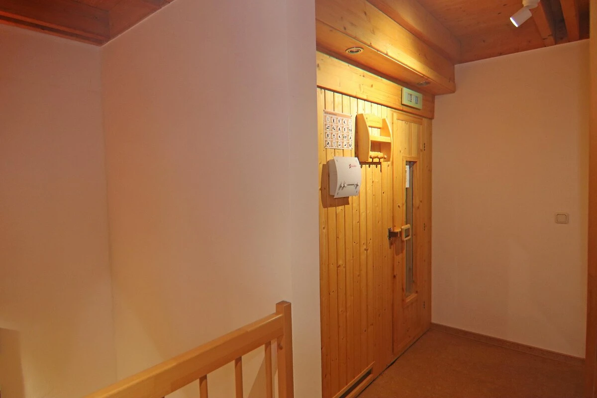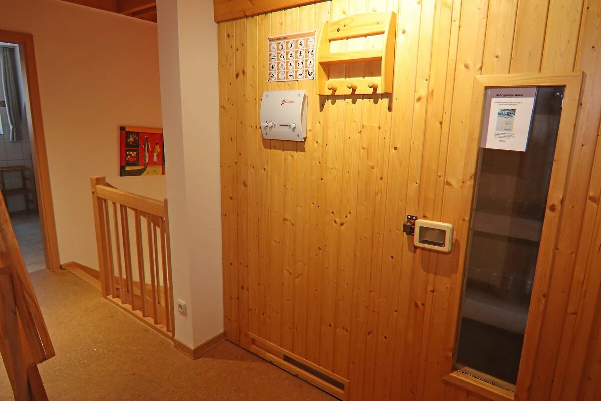 Al 1° piano: (Camera da letto(letto matrimoniale), Camera da letto(2x letto singolo), Bagno(doccia, sauna(privato), WC))