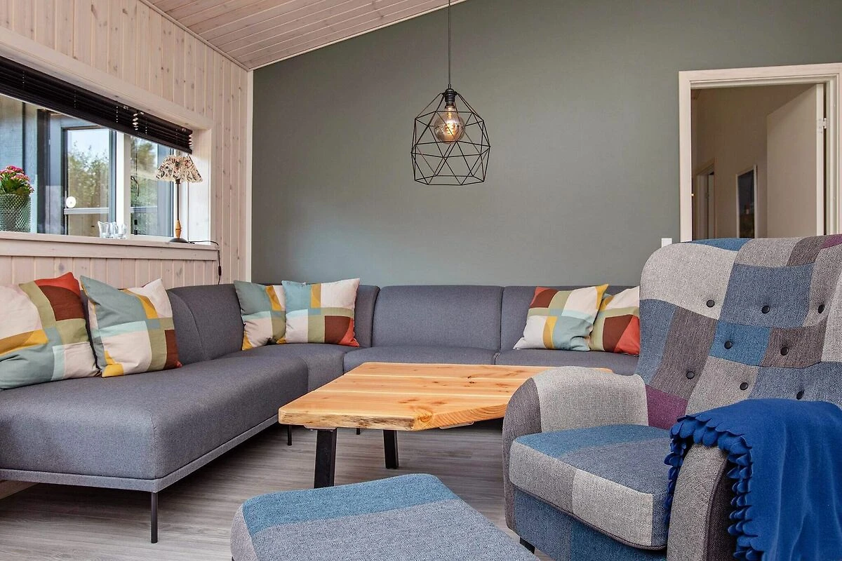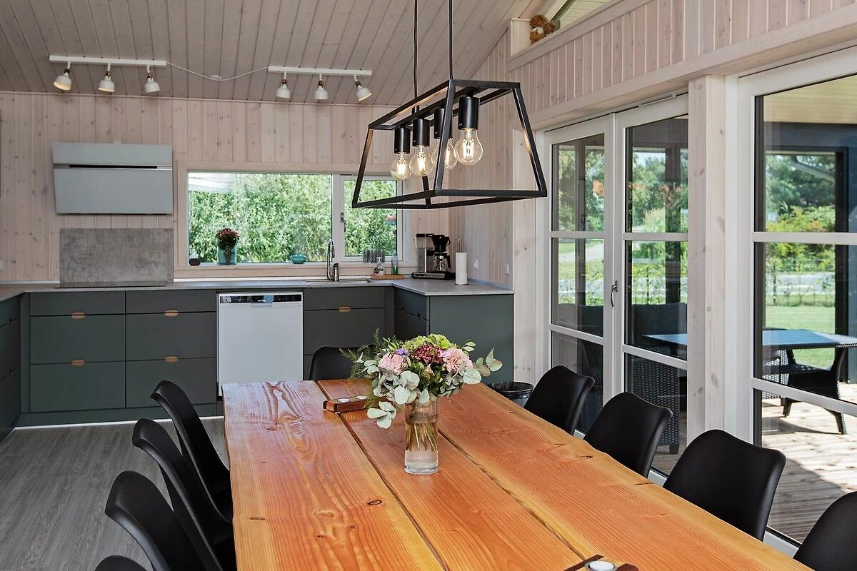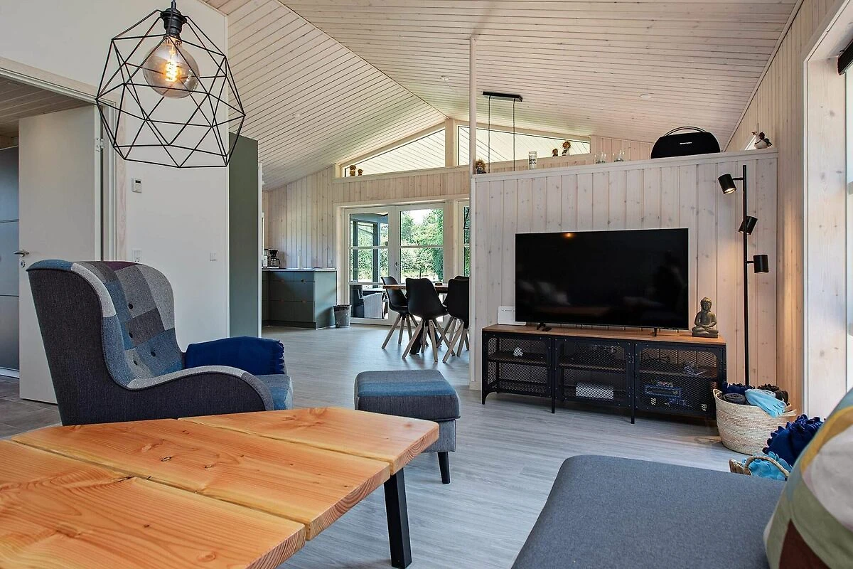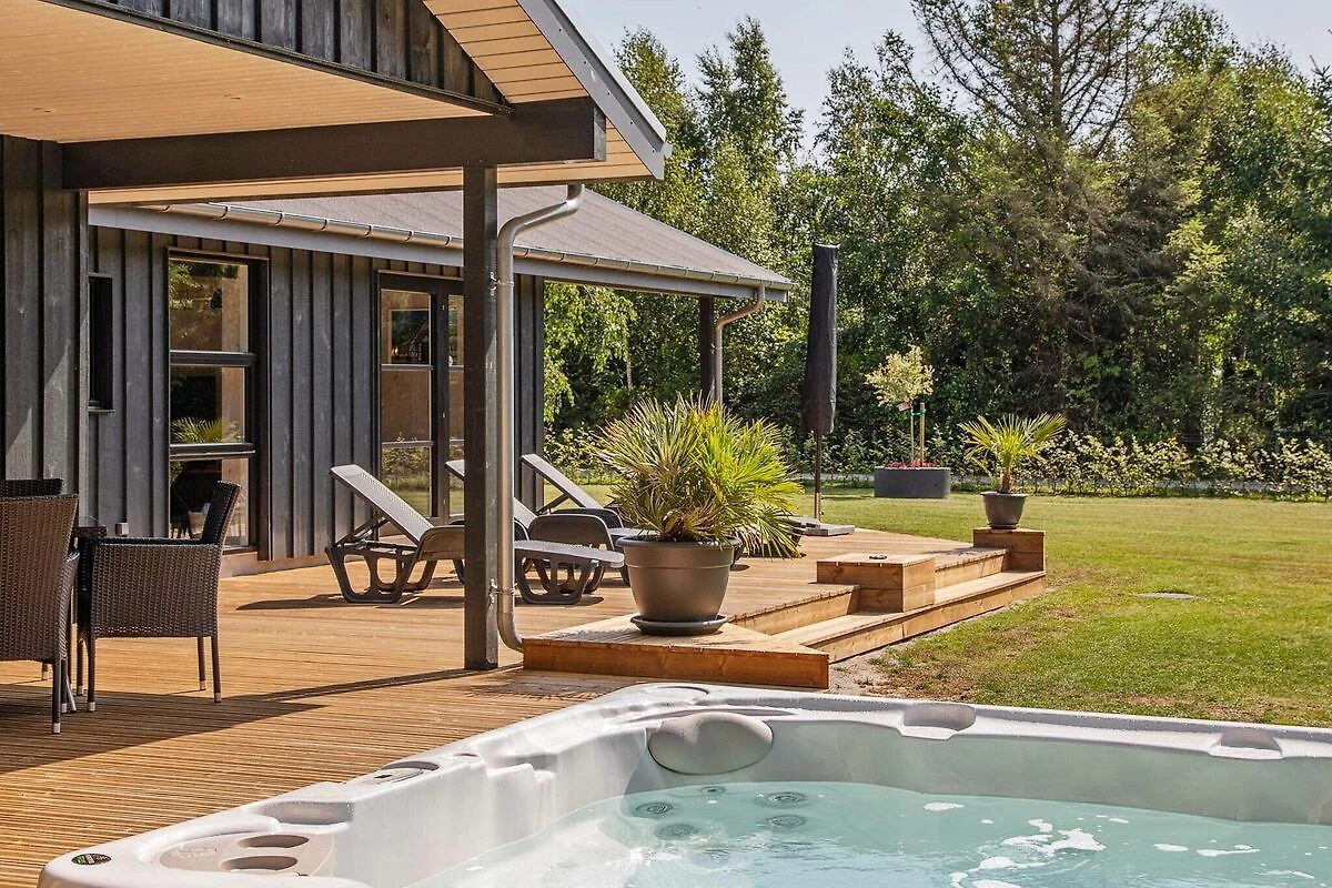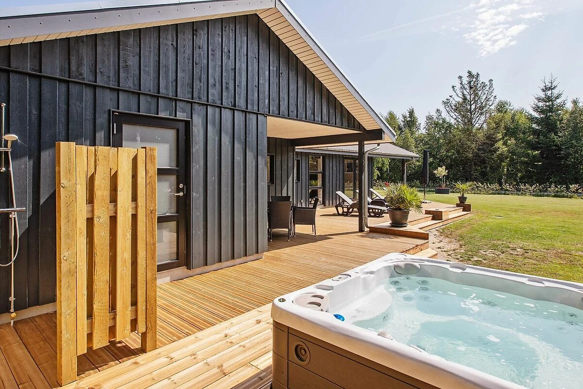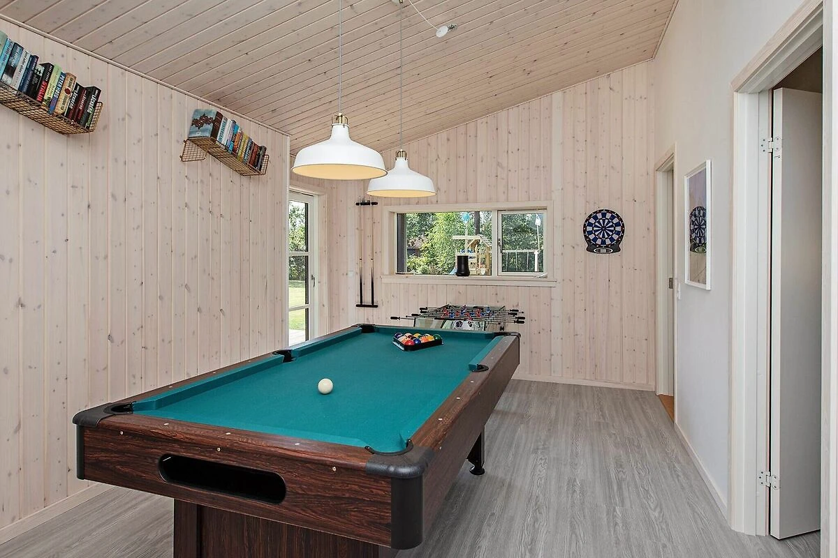 , Angolo cottura(mobile cucina(elettrico), cappa aspirante, caffettiera, forno a microonde, lavastoviglie, frigorifero, congelatore(60-99L)), Soggiorno/camera da letto(TV(canali televisivi tedeschi, canali TV danesi), seggiolone), Camera da letto(letto matrimoniale, lettino con sponde), Camera da letto(letto matrimoniale), Camera da letto(4x letto a castello), Bagno(sotto pavimento)(outdoor shower(all'esterno), asciugabiancheria, vasca o doccia, lavabo, WC, lavatrice), Bagno(sotto pavimento)(vasca o doccia, lavabo, WC), computer per giochi, vasca idromassaggio(all'esterno, 6 persone), sauna(all’interno, riscaldata, 6 persone), riscaldamento(elettrico), terrazza, terrazza(coperto), barbecue, giochi per bambini, biliardino, freccette, biliardo, termopompa aria-acqua