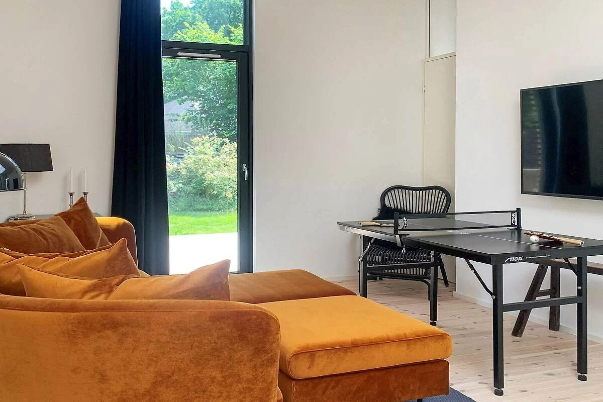 Angolo cottura(mobile cucina(elettrico), cappa aspirante, caffettiera, forno a microonde, lavastoviglie, frigorifero, congelatore(140-199L)), Soggiorno/camera da letto(TV(canali TV danesi), seggiolone, chromecast), Camera da letto(letto matrimoniale), Camera da letto(letto matrimoniale), Camera da letto(letto matrimoniale), Camera da letto(2x letto a castello), Bagno(sotto pavimento)(asciugabiancheria, vasca o doccia, lavabo, WC, lavatrice), Bagno(sotto pavimento)(vasca o doccia, lavabo, WC), riscaldamento(elettrico), terrazza, terrazza(coperto), giardino, barbecue, tavolo da ping pong, termopompa aria-aria
