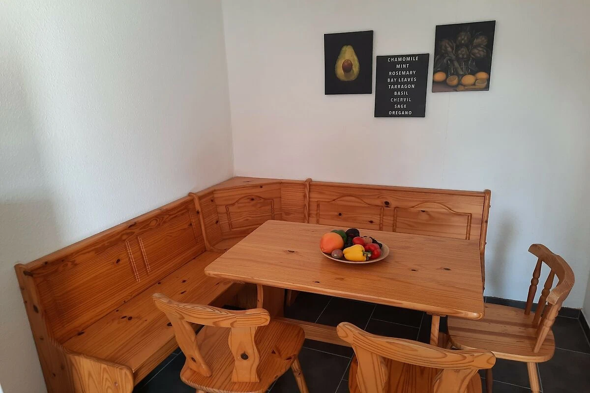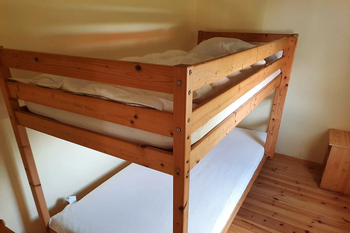 Pianterreno: (Soggiorno(TV(satellite)), Cucina separata(tavolo da pranzo, piano cottura(2 fuochi, ceramica), bollitore, tostapane, frigo con congelatore), Camera da letto(letto matrimoniale(200 x 180 cm)), Camera da letto(letto matrimoniale(200 x 160 cm)), Camera da letto(letto a castello(90 x 200 cm)), Bagno(doccia, WC))
