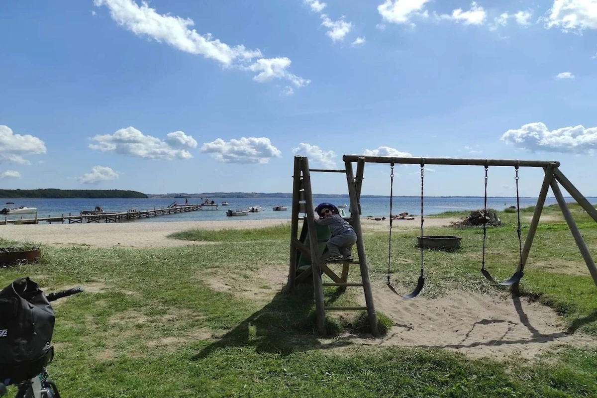 , Angolo cottura(mobile cucina(elettrico), cappa aspirante, caffettiera, forno a microonde, lavastoviglie, frigo con congelatore), Soggiorno/camera da letto(brandina doppia, TV(canali TV danesi), radio, chromecast), Camera da letto(letto matrimoniale), Camera da letto(2x letto a castello), Camera da letto(brandina doppia), Bagno(vasca o doccia, lavabo, WC, lavatrice), riscaldamento(elettrico), terrazza, terrazza(coperto), barbecue, giochi per bambini, termopompa aria-aria