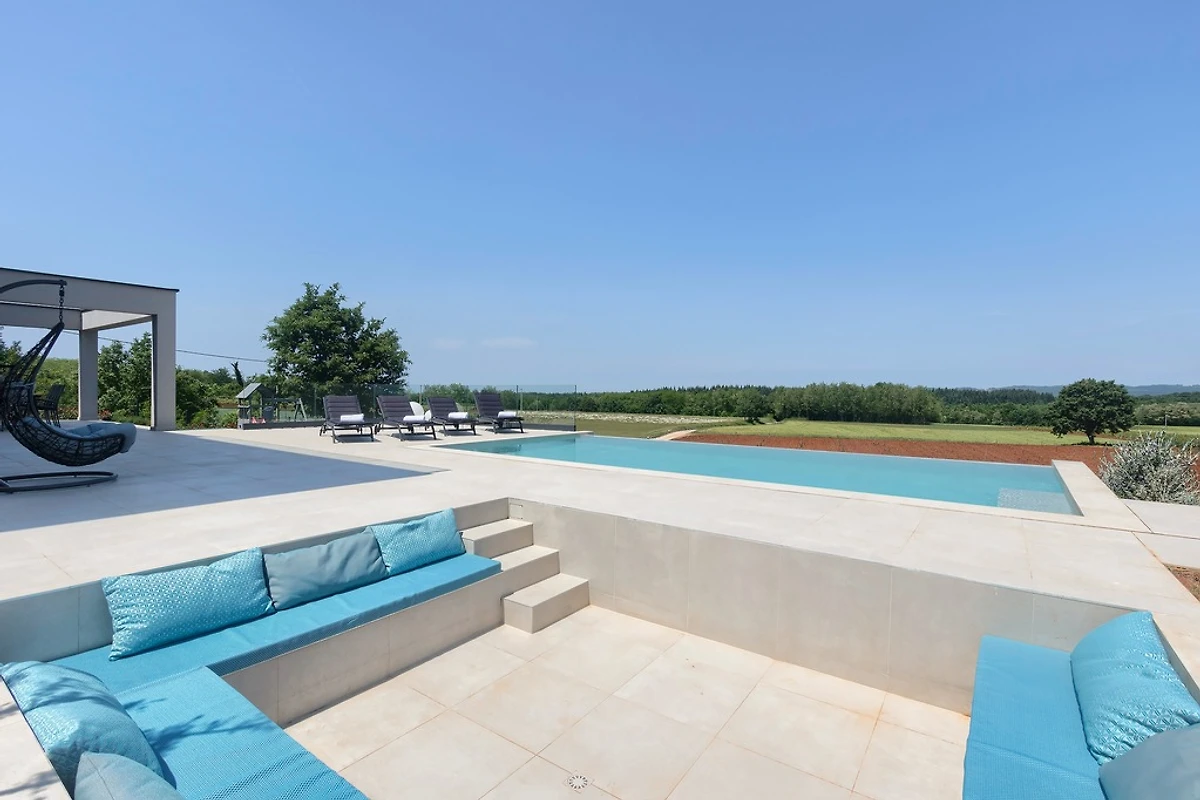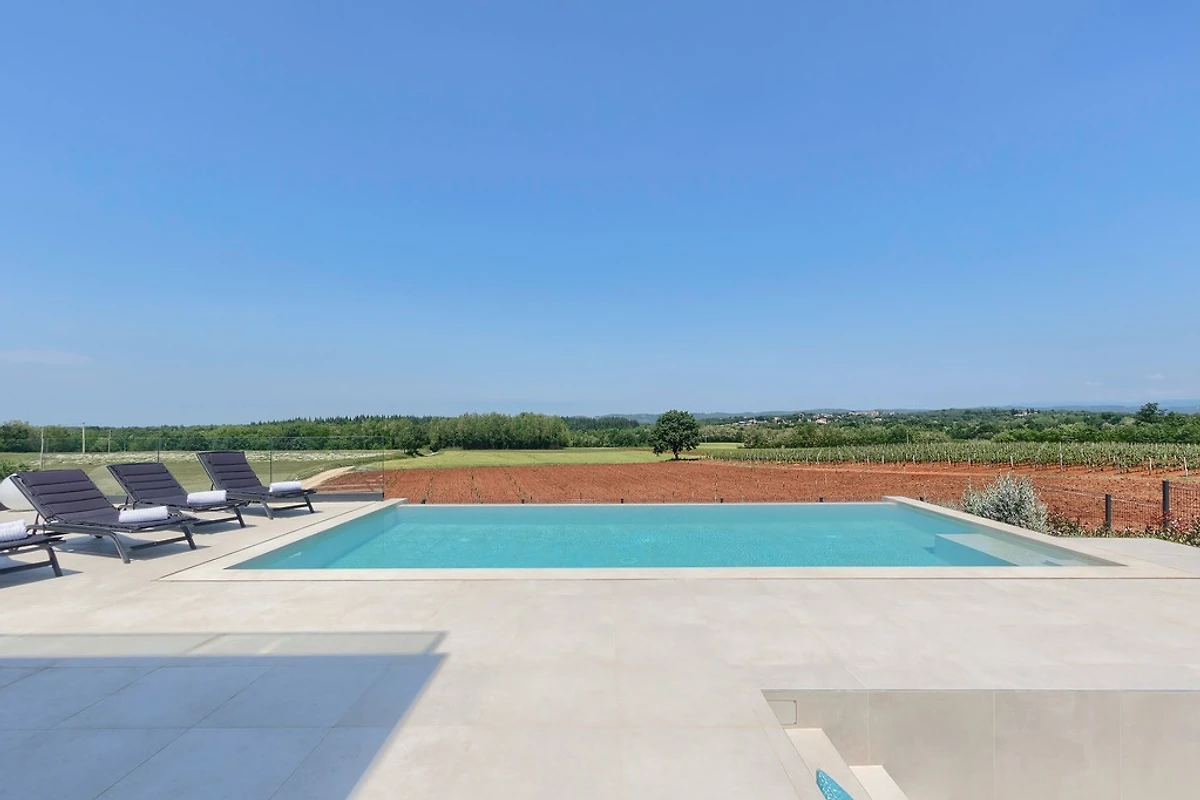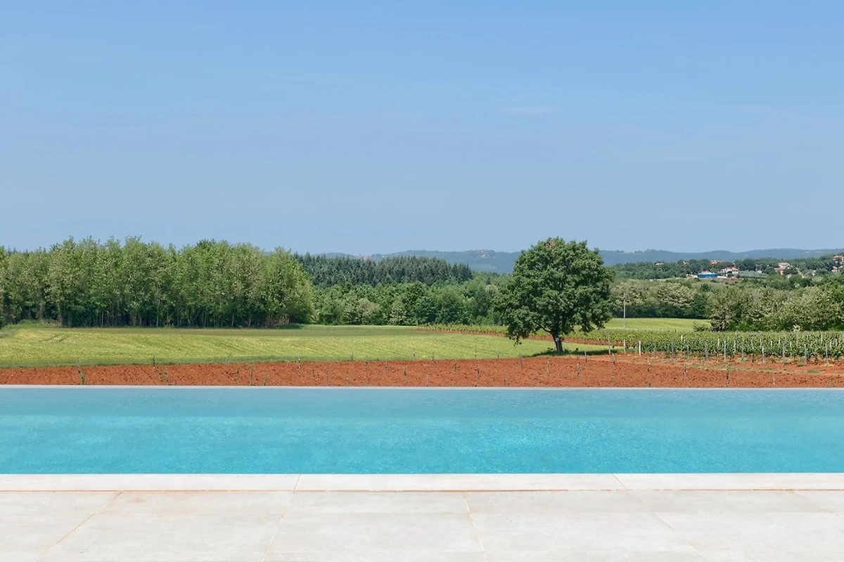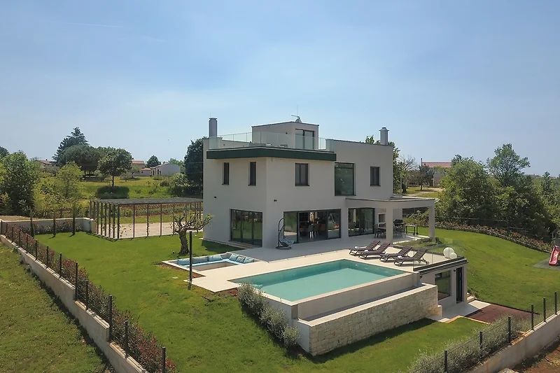 La casa è appartata e fornisce privacy. Vista sulla natura da quasi tutte le stanze. Nella parte superiore della casa c'è una terrazza con vista sul mare, le Alpi e Parenzo in lontananza
