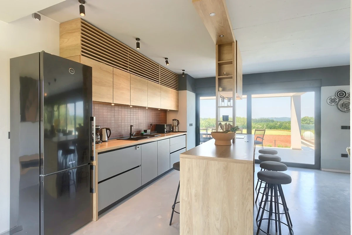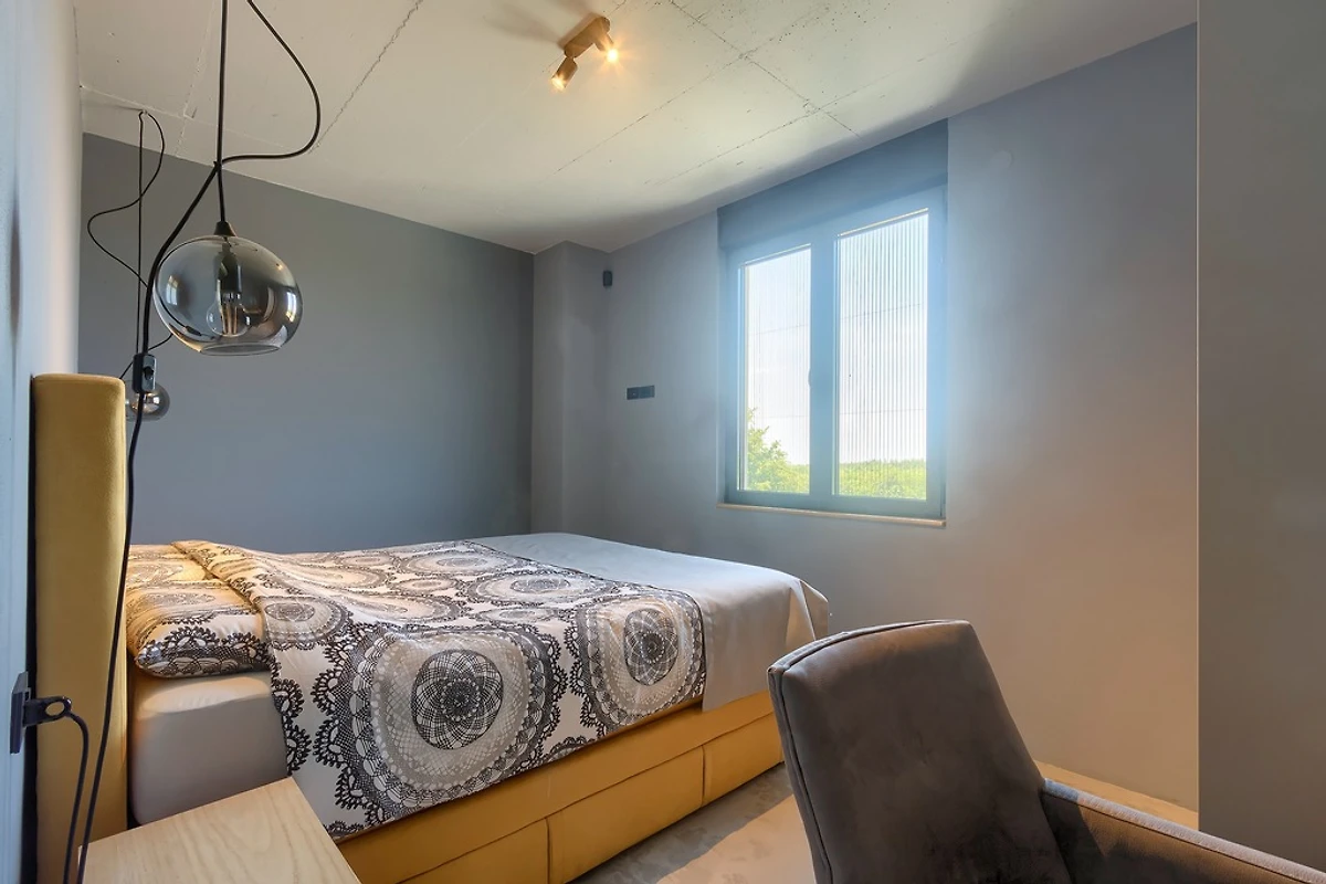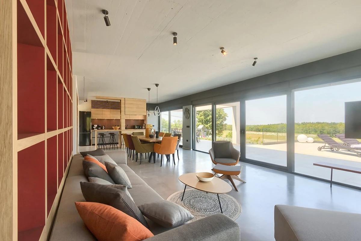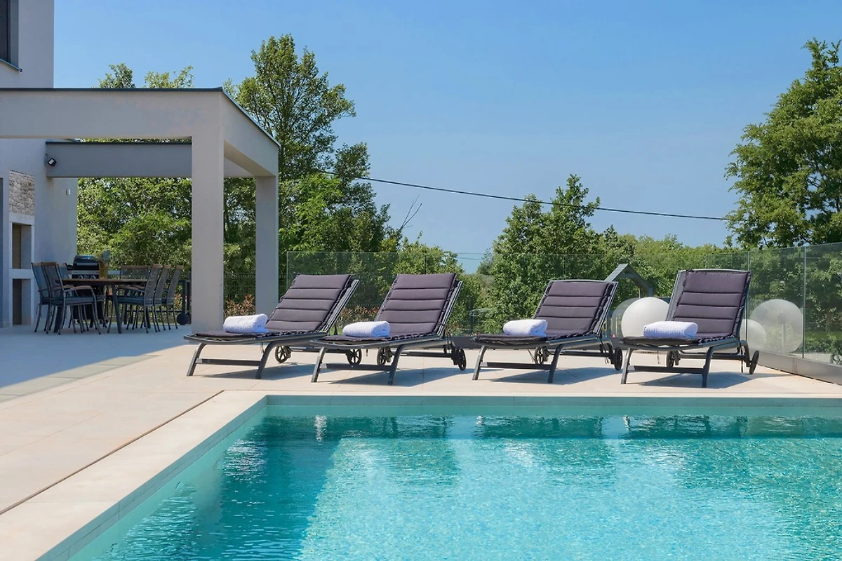 La casa è appartata e fornisce privacy. Vista sulla natura da quasi tutte le stanze. Nella parte superiore della casa c'è una terrazza con vista sul mare, le Alpi e Parenzo in lontananza