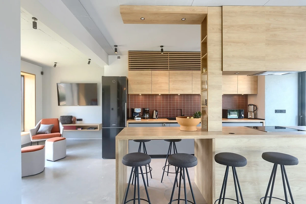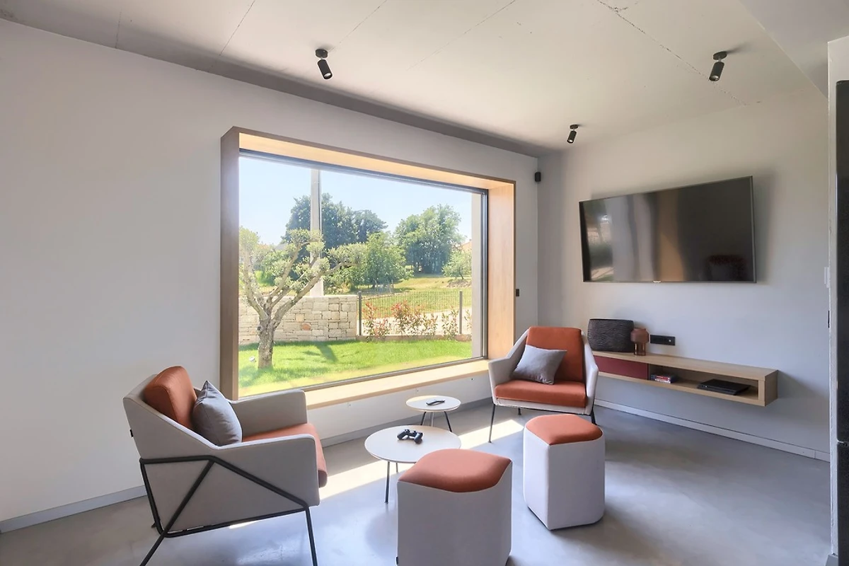 La casa è composta da un ampio soggiorno (open space), cucina, sala giochi (play station o cinema), 4 camere da letto con bagno privato, galleria con una splendida vista e 2 bagni aggiuntivi. Nella parte superiore della casa c'è una terrazza con sedie a sdraio.