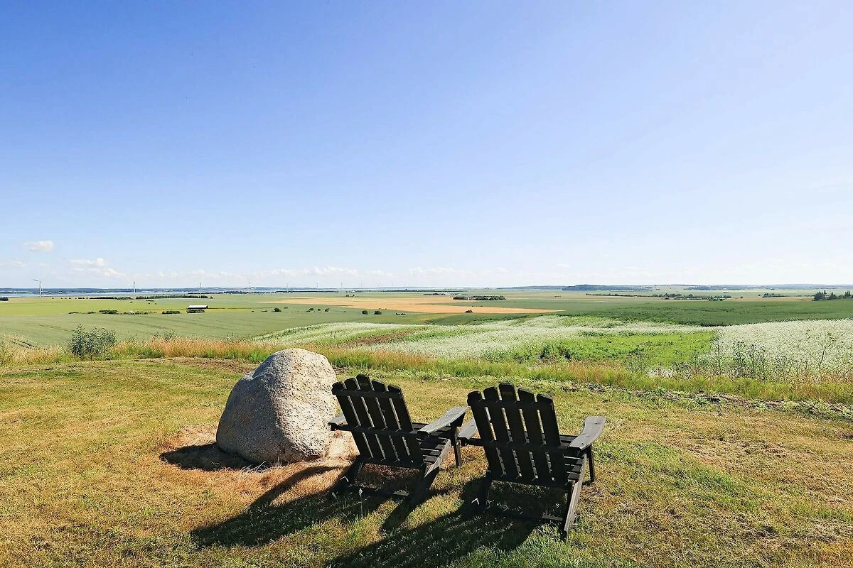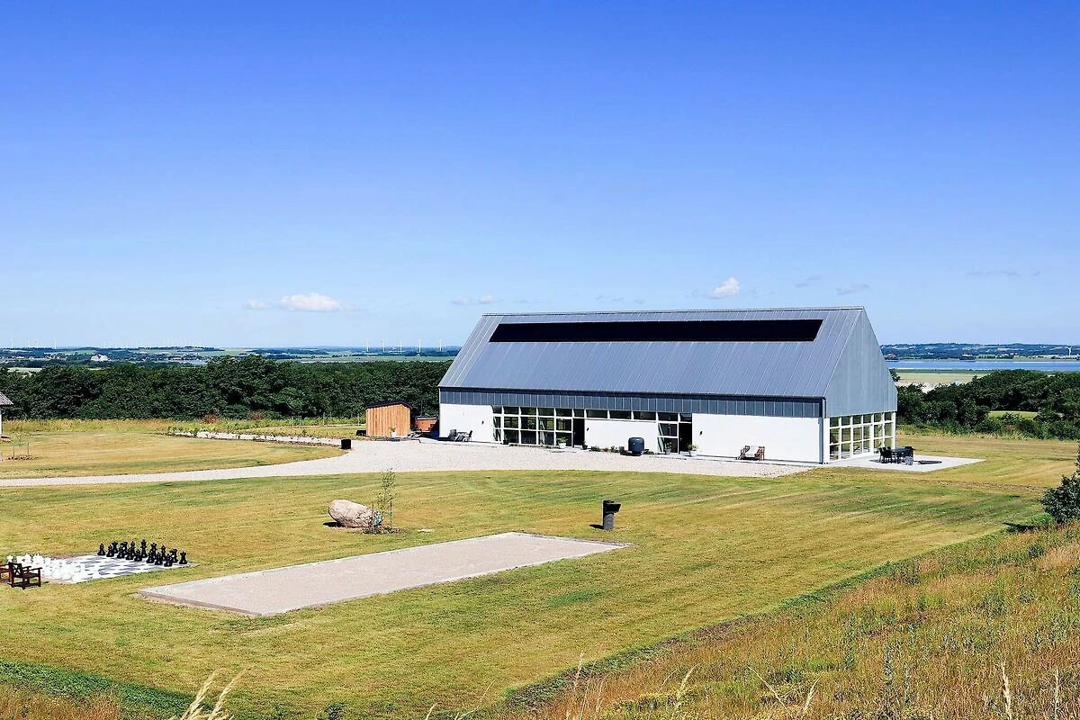 Questa casa di campagna di 323 m² si trova in posizione elevata con vista sulla campagna e sul Limfjord, a 2.500 metri di distanza. Architettura e design d'interni nordici, semplici e raffinati. Sono stati utilizzati i migliori materiali, con imponenti travi in legno alte 9 metri. Nonostante l'altezza del soffitto, l'acustica è buona. La casa è dotata di aspirapolvere centralizzato, forno autopulente, pompa di calore aria-acqua e celle solari, che la rendono una casa a basso consumo energetico.