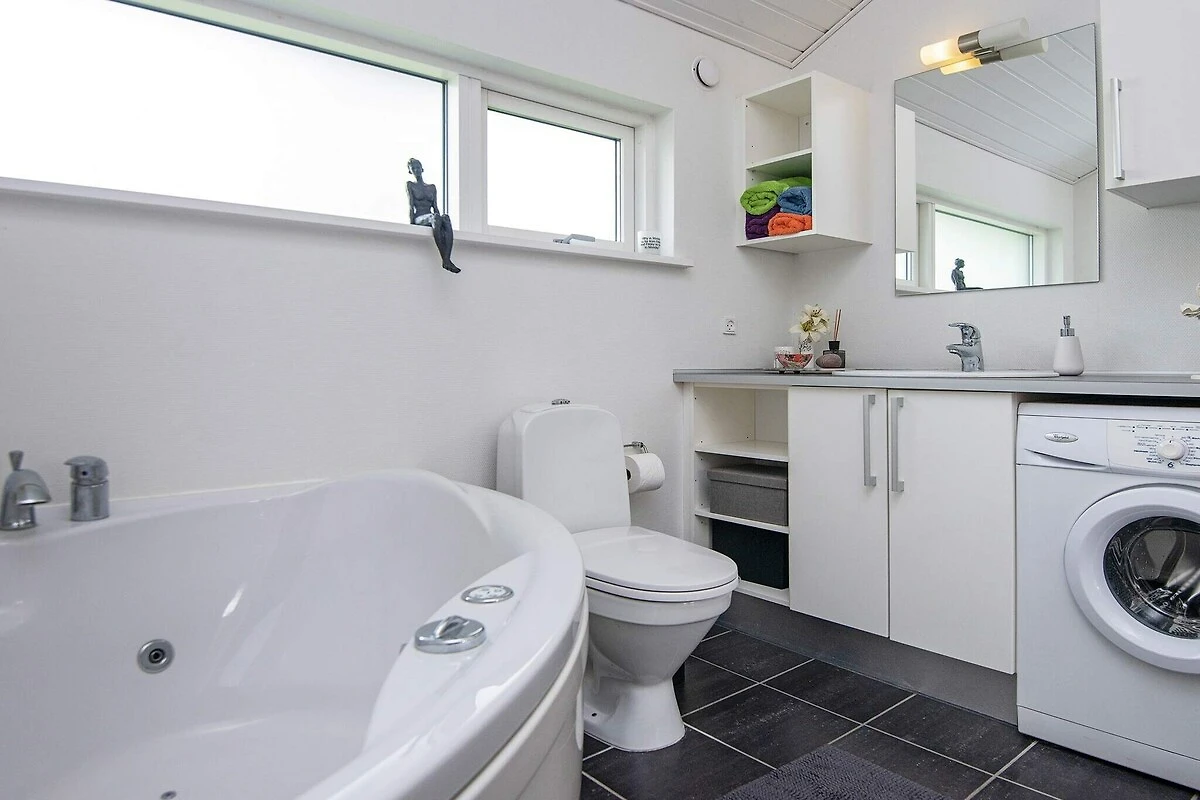 Questa accogliente casa vacanze dispone di una vasca idromassaggio privata e di un bellissimo terreno naturale con focolare e amaca, situata ad Ajstrup Strand, a soli 20-25 minuti di auto a sud di Aarhus. Perfetta per famiglie o coppie, offre interni luminosi e confortevoli con ampio spazio per rilassarsi. Il cuore della casa è l'ampia cucina a pianta aperta e la zona giorno, dotate di una stufa a legna per le serate più fresche. Ci sono due camere da letto, una con letto matrimoniale e l'altra con due letti singoli, oltre a un soppalco sotto il tetto spiovente e un divano letto per una persona in soggiorno. La proprietà dispone anche di un ampio bagno con vasca idromassaggio e doccia, oltre a un bagno per gli ospiti per una maggiore comodità.