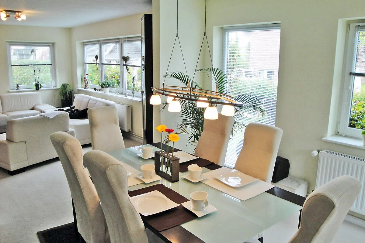 Il centro città con la zona pedonale e l'interessante porto con la sua variegata gastronomia, l'attracco dei piroscafi e le possibilità di pesca sono raggiungibili in meno di 5 minuti a piedi. La luminosa e moderna casa vacanze arredata (classificata DTV, 96 mq di superficie abitabile, adatta per 2-4 pers., WLAN) convince non solo per l'arredamento completo, ma anche per il bellissimo spazio esterno. Il giardino recintato di 623 m² con prato ben curato dispone di una casetta per arrampicarsi con scivolo per i piccoli ospiti e invita i genitori a una terrazza soleggiata con mobili da giardino, sedie a sdraio e barbecue