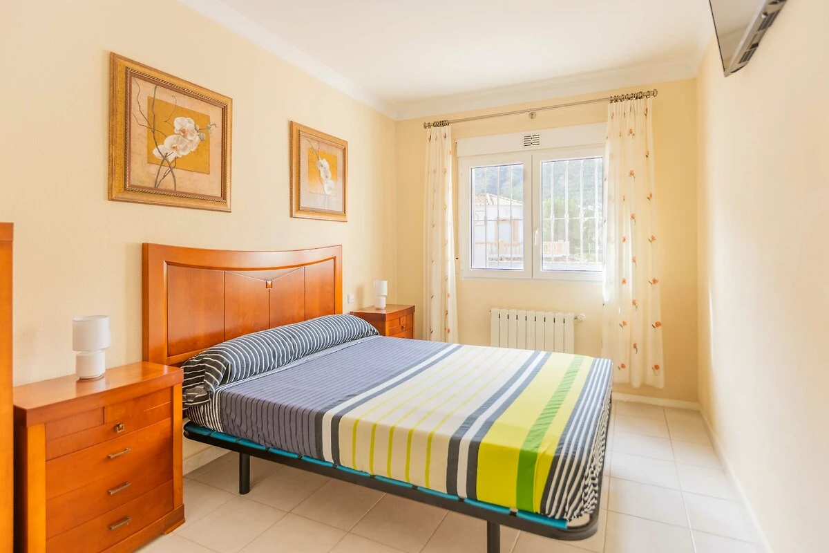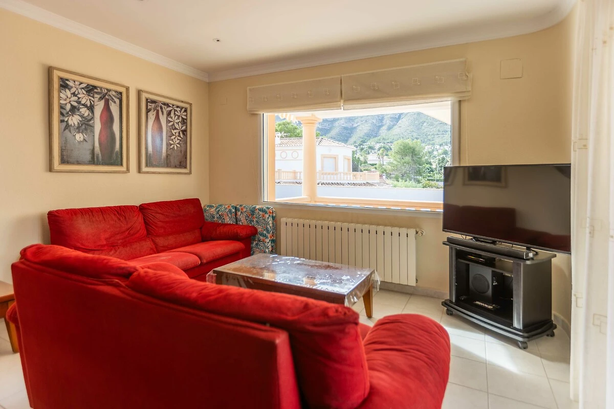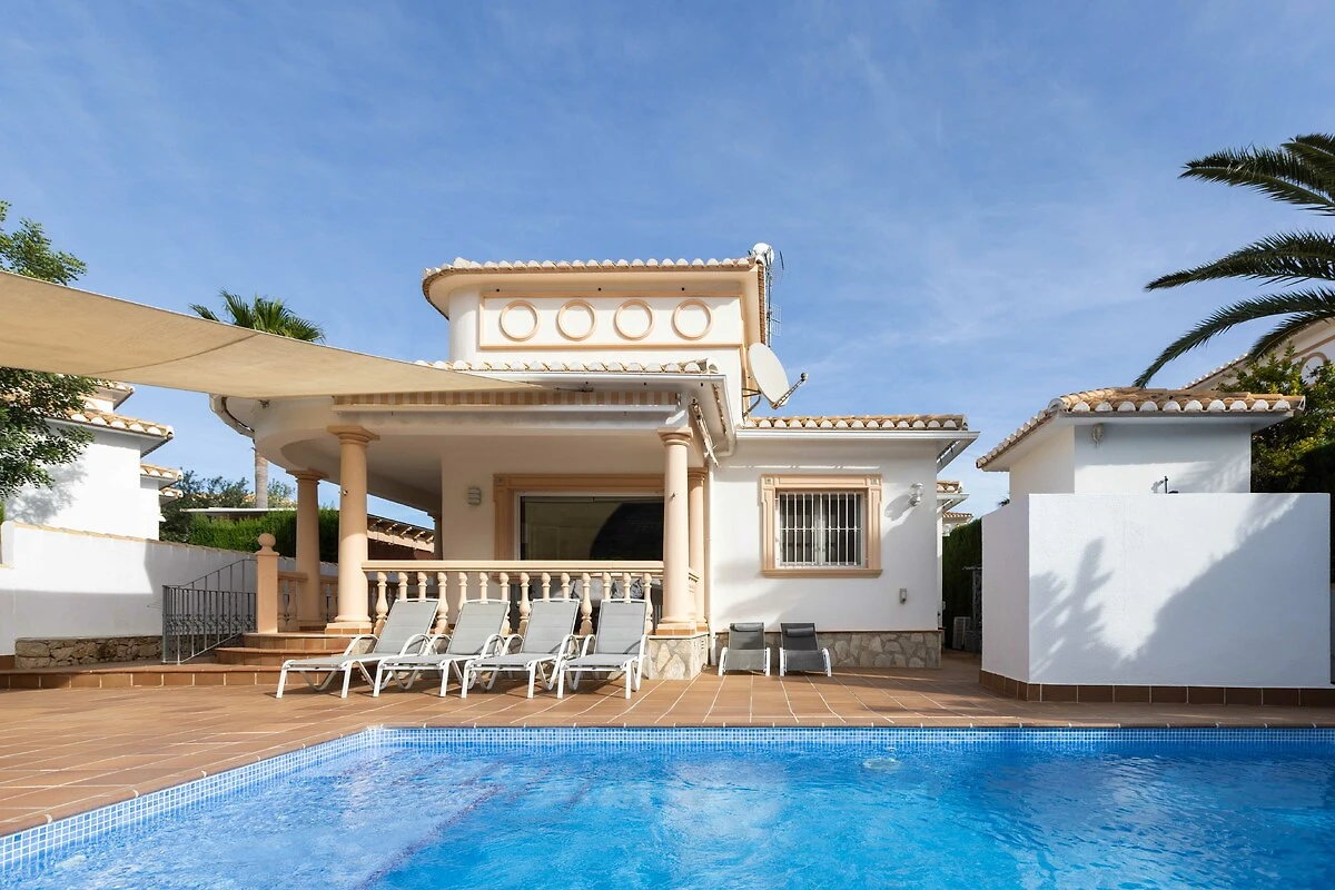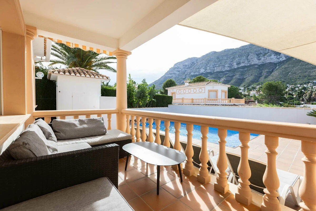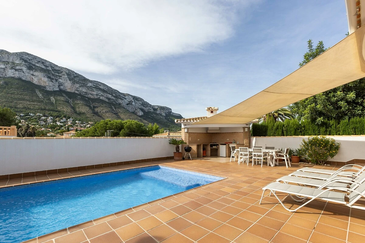 Bellissima villa nuova di 140 m² con aria condizionata, piscina privata e vista spettacolare sul monte Montgo, in una zona molto tranquilla alla fine di una strada senza uscita.