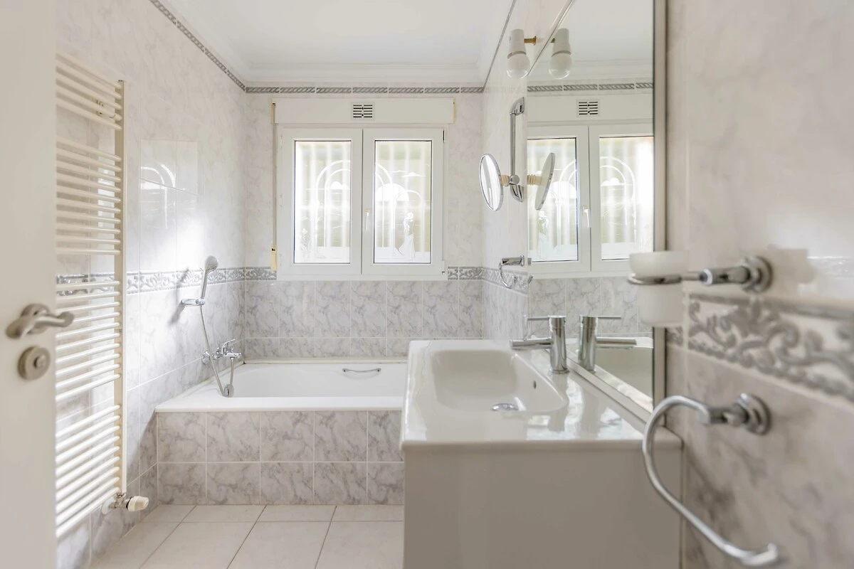 La villa dispone di una terrazza molto grande con lettini, un cortile interno, una cucina esterna, una piscina privata di 8m x 3,80m e una doccia esterna riscaldata. È una villa che ha sole tutto l'anno e tutto il giorno. Godetevi i momenti tranquilli e rilassanti sulla terrazza aggiuntiva con un divano ad angolo e due poltrone per un aperitivo rinfrescante.
