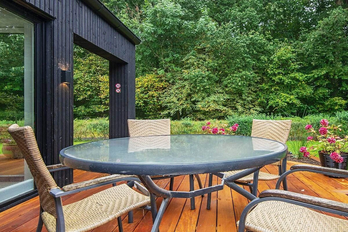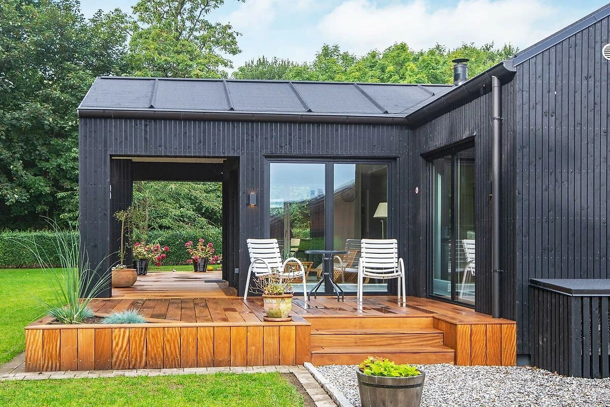 , Angolo cottura(mobile cucina(elettrico), cappa aspirante, caffettiera, forno a microonde, lavastoviglie, frigo con congelatore), Soggiorno/camera da letto(brandina doppia, TV(canali TV danesi), chromecast), Camera da letto(letto matrimoniale, lettino con sponde), Camera da letto(letto matrimoniale), Bagno(sotto pavimento)(vasca o doccia, lavabo, WC, lavatrice), sauna(all'esterno), riscaldamento(elettrico), terrazza, terrazza(coperto), barbecue, giochi per bambini, termopompa aria-aria