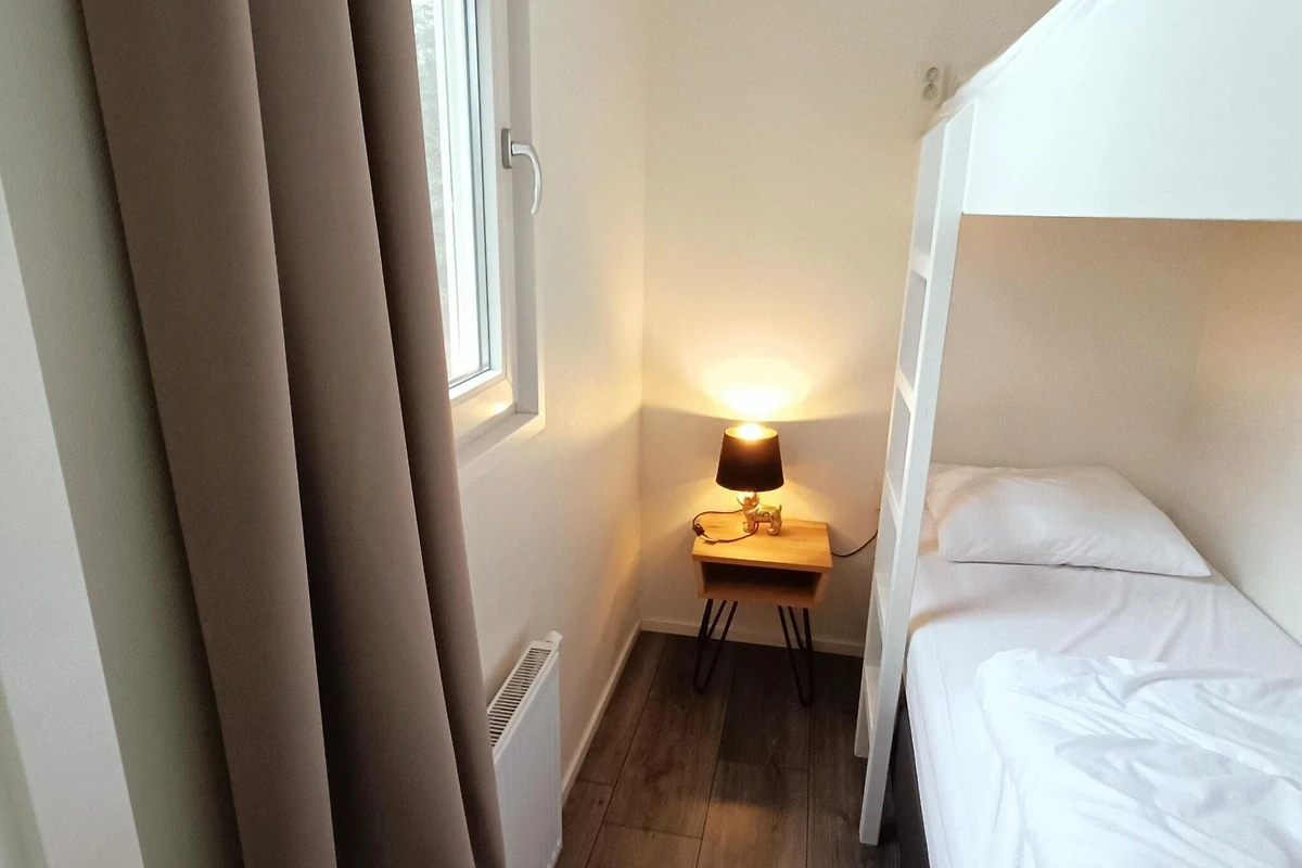 Situato all'interno di un tranquillo villaggio vacanze, il vostro soggiorno include l'accesso a una piscina esterna riscaldata in comune, a pochi passi di distanza. Per un tocco di benessere in più, godetevi la sauna a infrarossi privata all'interno del vostro chalet, perfetta per rilassarvi dopo una giornata di avventure. Con tre camere da letto (incluso un letto a castello per i bambini) e una cabina doccia, la disposizione è pensata per offrire comfort e funzionalità. Aprite le porte del giardino e godetevi l'aria fresca nel vostro giardino privato o sulla terrazza arredata.