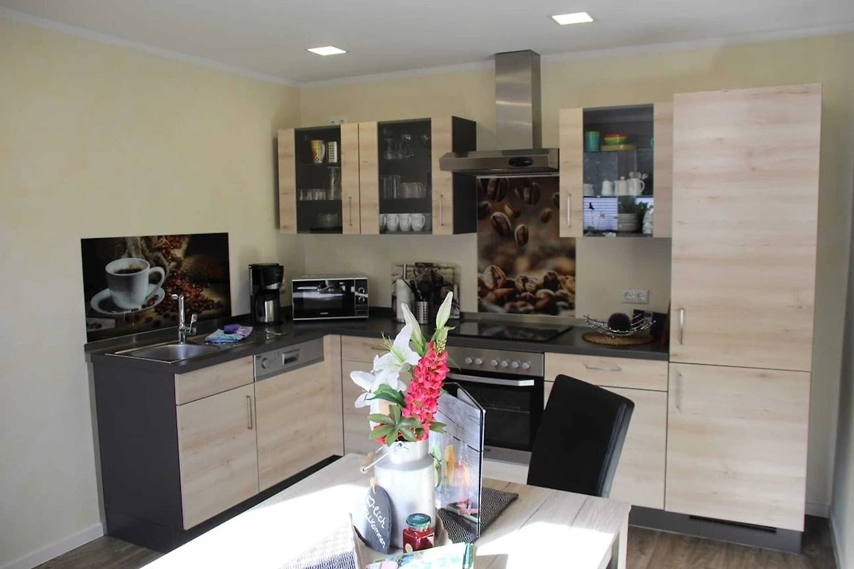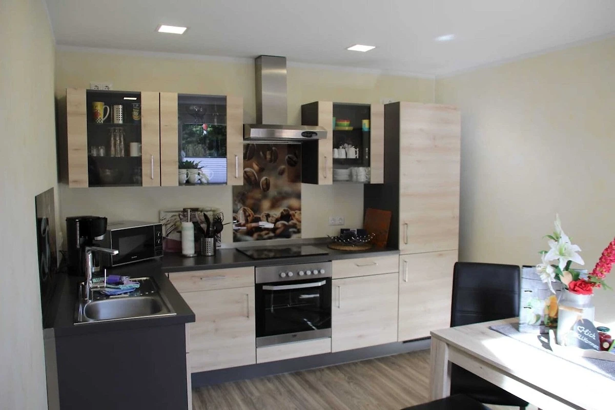 Pulito e moderno! Super posto per una fuga tra amici, La regione è discretamente bella, e il barbecue è un buon aggiunta per queste notti d'estate, Le attrazioni vicine come il Castello di Wernigerode sono da vedere assolutamente, Non vedo l'ora di postare alcune foto!