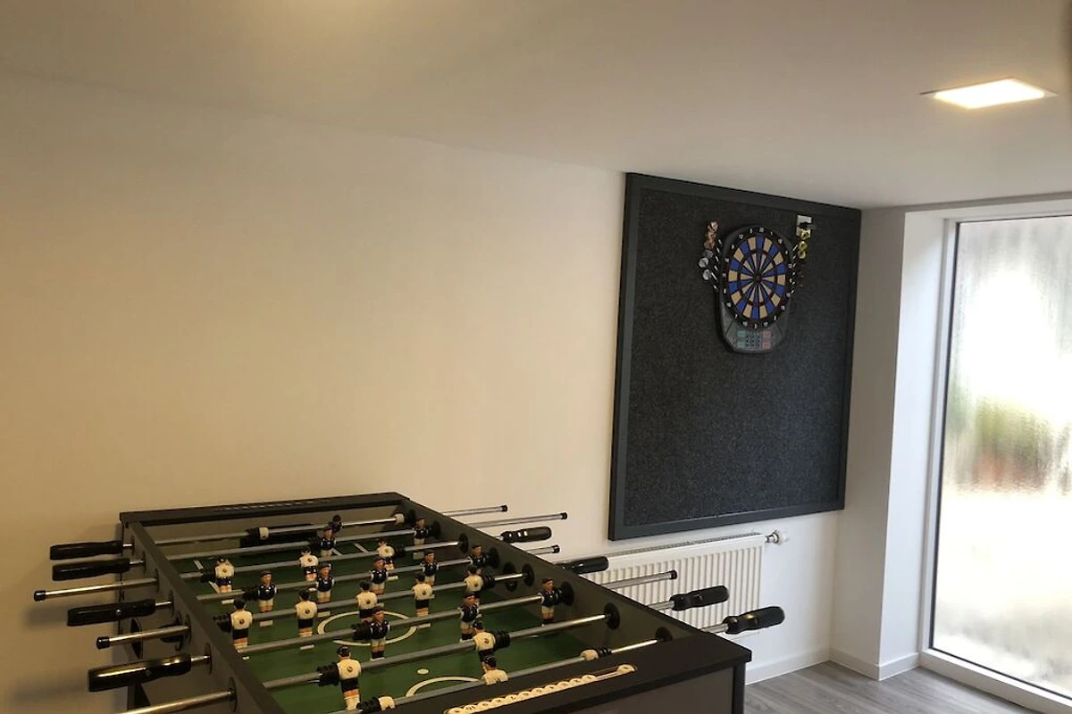 Abbiamo passato un ottimo momento in questa casa vacanze! La posizione era perfetta per esplorare la regione dell'Harz, Ho adorato il soggiorno accogliente e i letti super comodi, Abbiamo trascorso serate a giocare a freccette nella sala comune, che era un buon modo per rilassarsi dopo una giornata di escursioni, La terrazza era incantevole per il caffè del mattino, avrei solo voluto che il WiFi fosse un po' più veloce, Nel complesso, tornerei senza esitazione!
